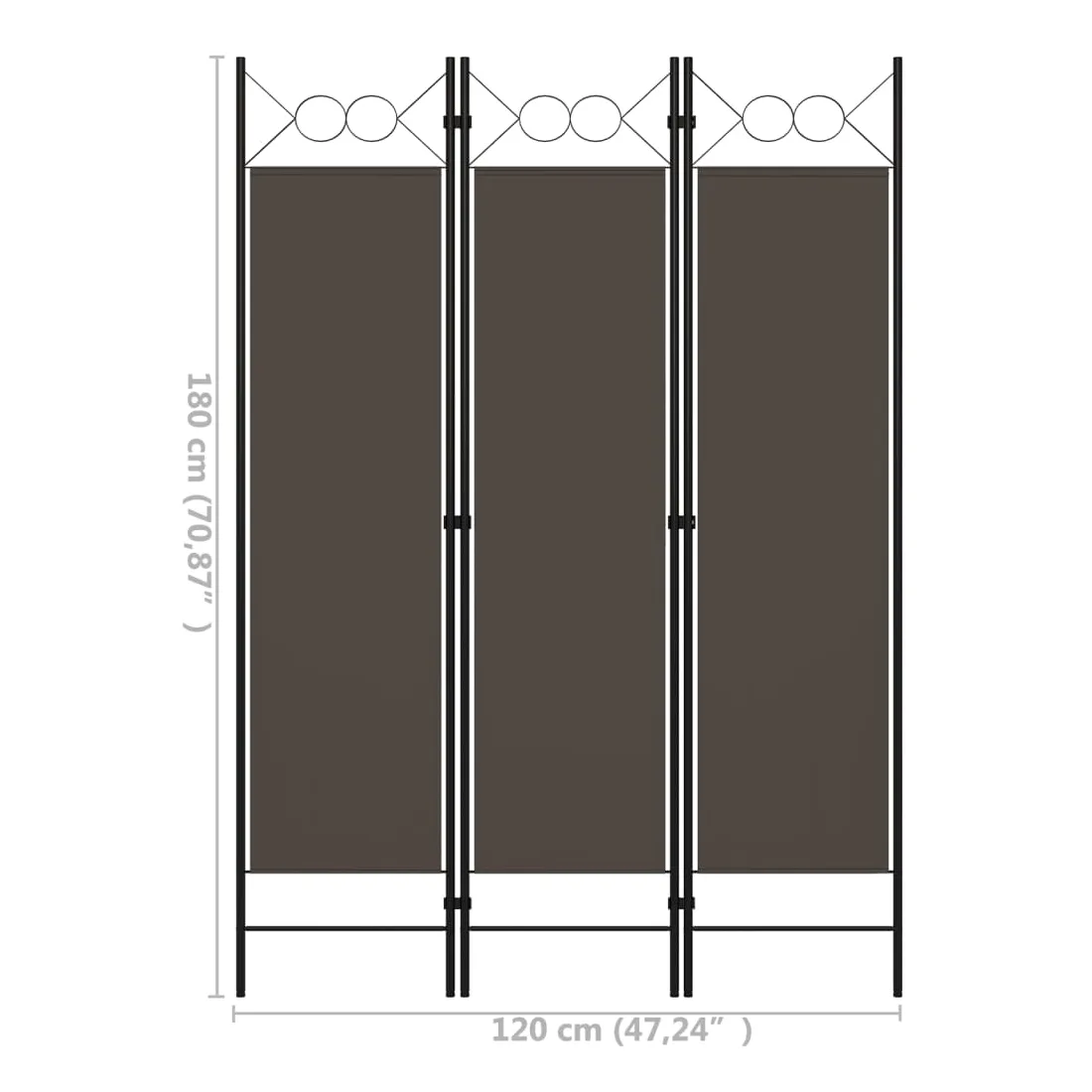 Notre cloison de séparation autoportante et pratique à 3 panneaux peut être utilisée comme cloison, écran d'intimité ou pour la décoration. Elle offre une intimité idéale dans la chambre à coucher ou un compartiment de la pièce. Le dessus avec un design circulaire ajoute une élégance supplémentaire. Cette cloison de séparation, composée d'un cadre en fer enduit de poudre et d'écrans en tissu, peut être facilement pliée lorsqu'elle n'est pas utilisée. Remarque : le tissu ne bloque pas complètement toute la lumière.