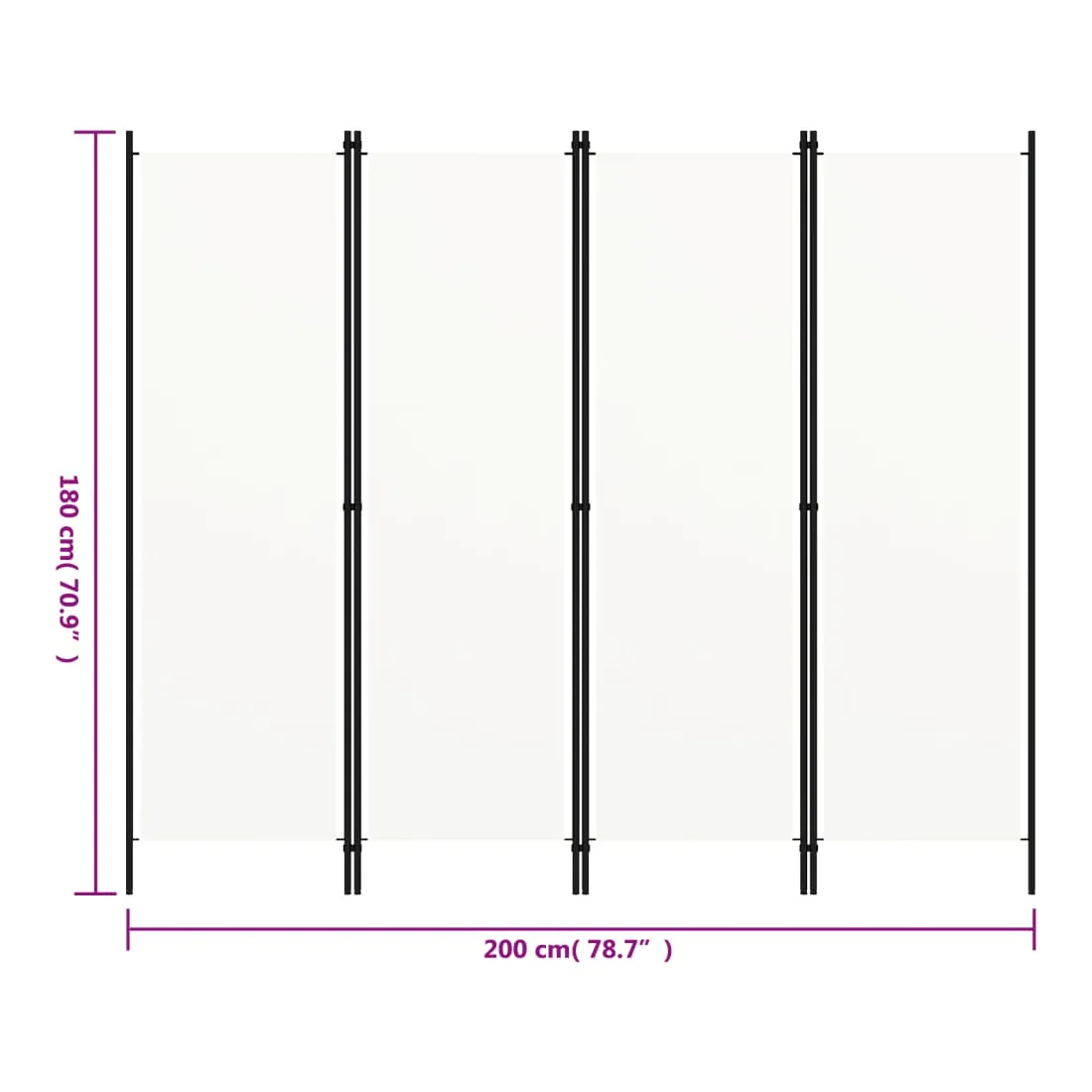 Notre cloison de séparation à 4 panneaux autoportante et pratique peut être utilisée comme cloison, écran d'intimité ou pour la décoration. Elle peut offrir une intimité idéale dans la chambre à coucher ou un compartiment de la pièce. Faite d'un cadre en fer enduit de poudre et d'écrans en tissu, cette cloison de séparation peut être facilement pliée lorsqu'elle n'est pas utilisée. Remarque : le tissu ne bloque pas complètement toute la lumière.