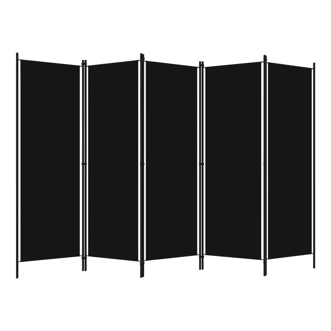 Notre cloison de séparation à 5 panneaux autoportante et pratique peut être utilisée comme cloison, écran d'intimité ou pour la décoration. Elle peut offrir une intimité idéale dans la chambre à coucher ou un compartiment de la pièce. Faite d'un cadre en fer enduit de poudre et d'écrans en tissu, cette cloison de séparation peut être facilement pliée lorsqu'elle n'est pas utilisée. Remarque : le tissu ne bloque pas complètement toute la lumière.