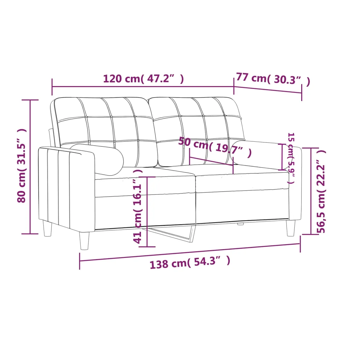 Ce canapé 2 places, qui se démarque par son design moderne et ses coussins décoratifs, sera un excellent endroit pour discuter, regarder la télévision ou simplement vous détendre. Tissu durable : le tissu présente un aspect simple et épuré tout en restant respirant et durable.Cadre robuste et stable : le cadre en métal du canapé de salon assure robustesse et stabilité.Housses d'oreillers amovibles : grâce à la fermeture éclair, les housses de ces oreillers de traversin sont faciles à retirer et à nettoyer en cas de besoin.Expérience d'assise confortable : le canapé est très confortable avec les sièges, les accoudoirs et les oreillers de dossier bien rembourrés. En outre, les oreillers décoratifs peuvent ajouter un confort supplémentaire lorsque vous êtes assis ou allongé.