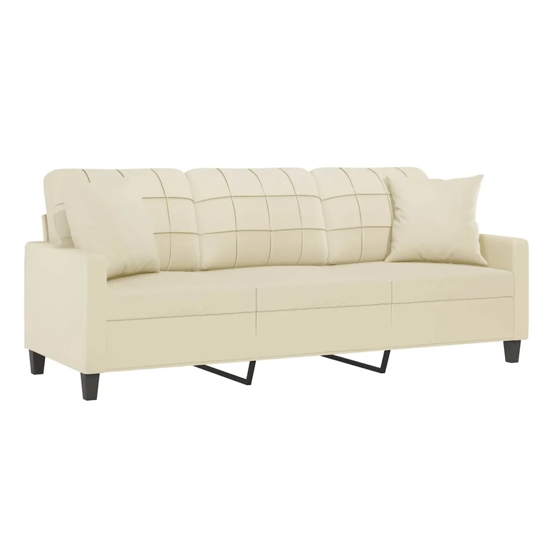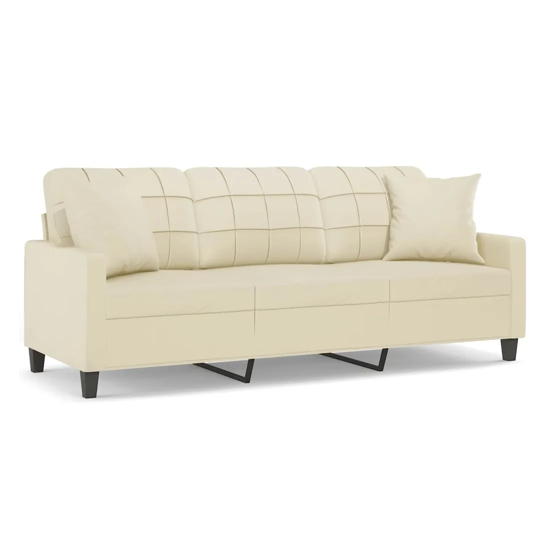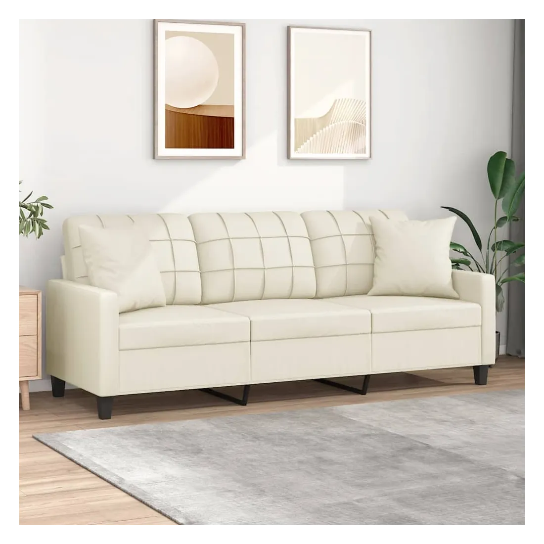 Ce canapé 3 places, qui se démarque par son design moderne et ses coussins décoratifs, sera un excellent endroit pour discuter, regarder la télévision ou simplement vous détendre. Similicuir durable : le similicuir de qualité supérieure est un matériau très durable. Il est résistant aux taches, ce qui le rend facile à nettoyer avec un chiffon humide. La surface lisse donne également un aspect luxueux et la beauté du cuir véritable.Cadre robuste et stable : le cadre en métal du canapé de salon assure robustesse et stabilité.Oreillers décoratifs avec inserts : ces oreillers décoratifs sont livrés avec des inserts en coton PP, vous n'avez donc pas besoin d'acheter des rembourrages.Expérience d'assise confortable : le canapé est très confortable avec les sièges, les accoudoirs et les oreillers de dossier bien rembourrés. En outre, les oreillers décoratifs peuvent ajouter un confort supplémentaire lorsque vous êtes assis ou allongé.