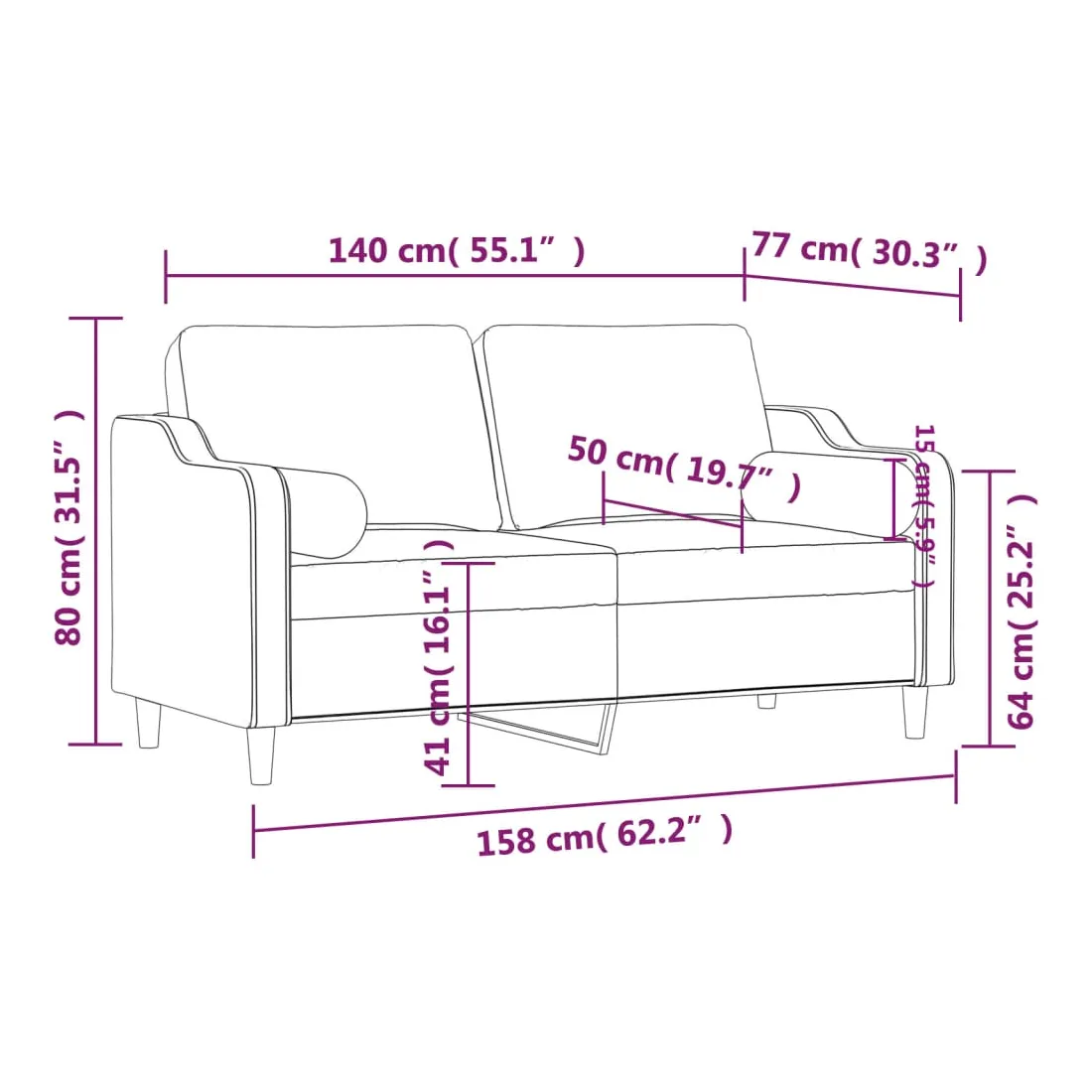 Ce canapé 2 places, qui se démarque par son design moderne et ses coussins décoratifs, sera un excellent endroit pour discuter, regarder la télévision ou simplement vous détendre. Tissu durable : le tissu présente un aspect simple et épuré tout en restant respirant et durable.Cadre robuste et stable : le cadre en métal du canapé de salon assure robustesse et stabilité.Housses d'oreillers amovibles : grâce à la fermeture éclair, les housses de ces oreillers de traversin sont faciles à retirer et à nettoyer en cas de besoin.Expérience d'assise confortable : le canapé est très confortable avec les sièges, les accoudoirs et les oreillers de dossier bien rembourrés. En outre, les oreillers décoratifs peuvent ajouter un confort supplémentaire lorsque vous êtes assis ou allongé.