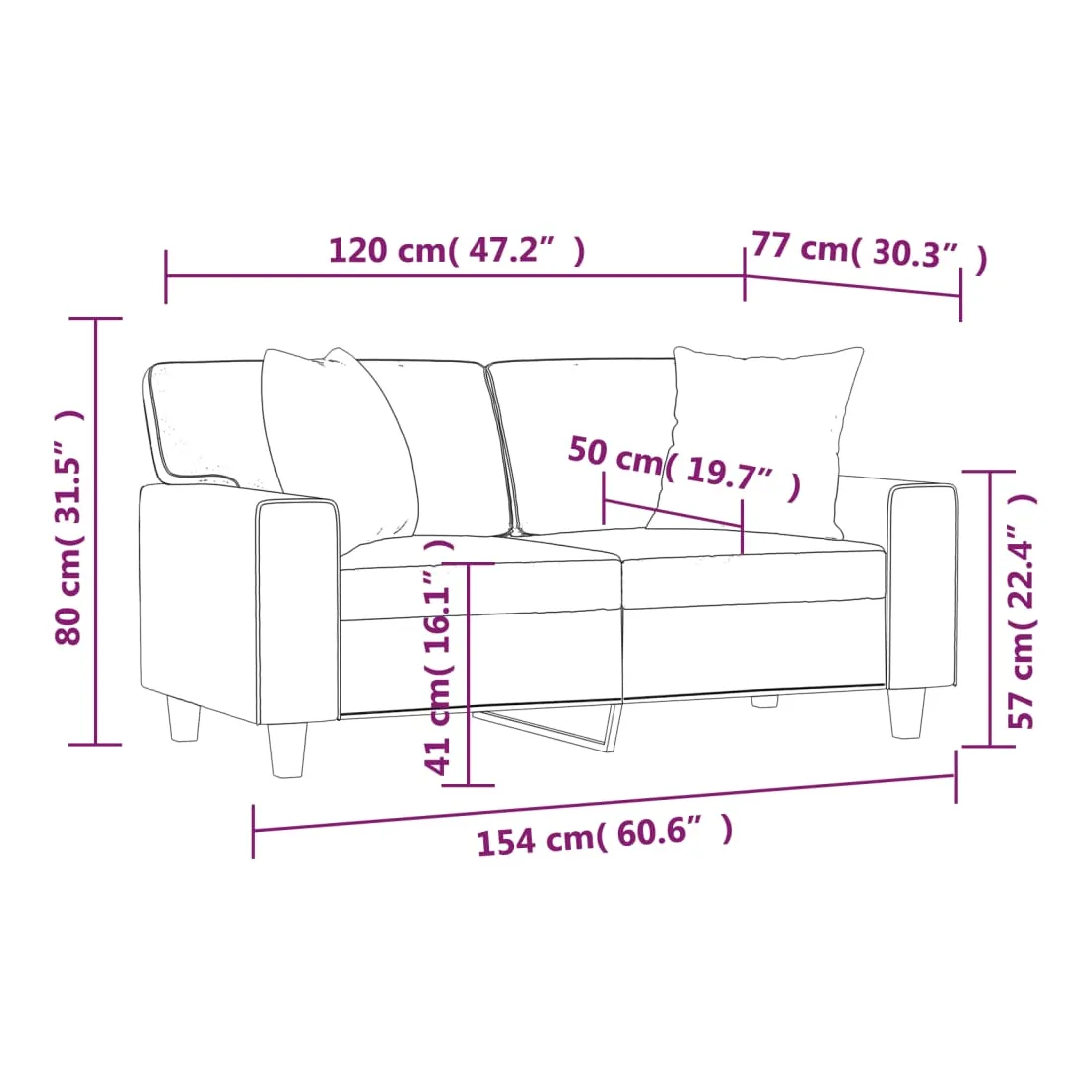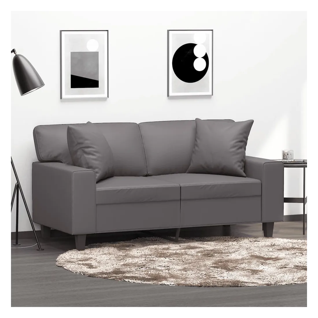 Ce canapé 2 places, qui se démarque par son design moderne et ses coussins décoratifs, sera un excellent endroit pour discuter, regarder la télévision ou simplement vous détendre. Similicuir durable : le similicuir de qualité supérieure est un matériau très durable. Il est résistant aux taches, ce qui le rend facile à nettoyer avec un chiffon humide. La surface lisse donne également un aspect luxueux et la beauté du cuir véritable.Cadre robuste et stable : le cadre en métal du canapé de salon assure robustesse et stabilité.Oreillers décoratifs avec inserts : ces oreillers de canapé sont livrés avec des inserts en coton PP, vous n'avez donc pas besoin d'acheter des rembourrages.Expérience d'assise confortable : le canapé est très confortable avec les sièges, les accoudoirs et les oreillers de dossier bien rembourrés. En outre, les oreillers décoratifs peuvent ajouter un confort supplémentaire lorsque vous êtes assis ou allongé.