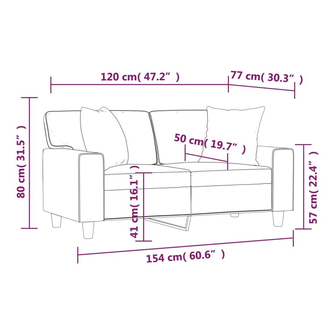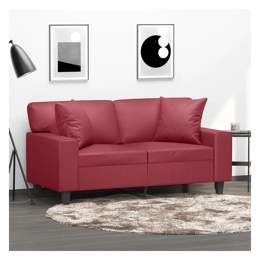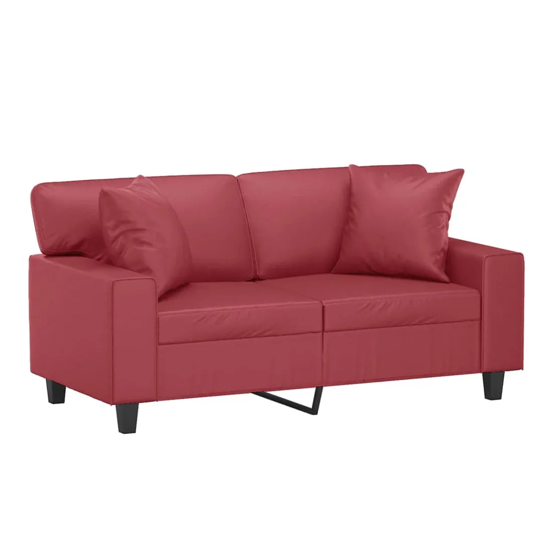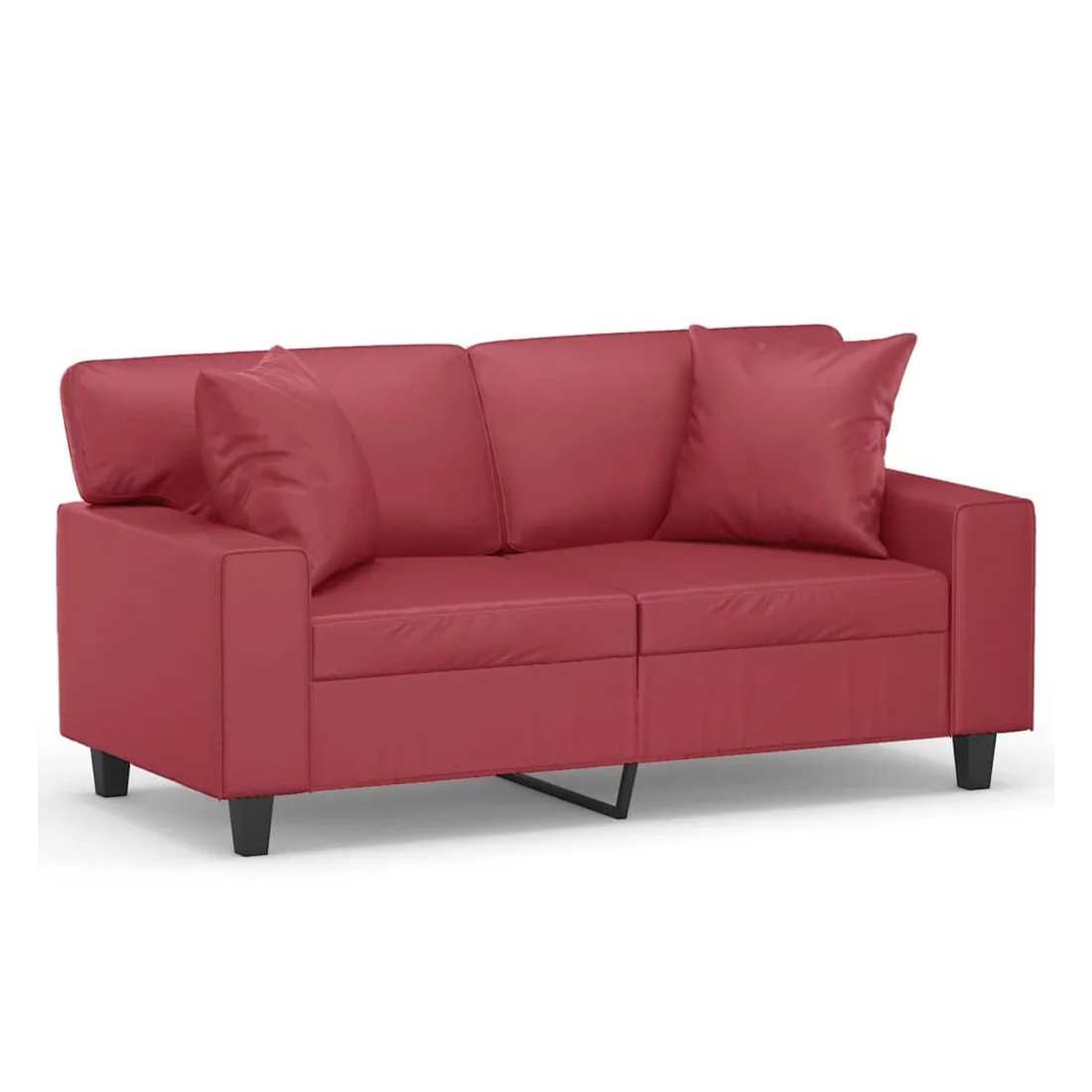 vidaXLCe canapé 2 places, qui se démarque par son design moderne et ses coussins décoratifs, sera un excellent endroit pour discuter, regarder la télévision ou simplement vous détendre. Similicuir durable : le similicuir de qualité supérieure est un matériau très durable. Il est résistant aux taches, ce qui le rend facile à nettoyer avec un chiffon humide. La surface lisse donne également un aspect luxueux et la beauté du cuir véritable.Cadre robuste et stable : le cadre en métal du canapé de salon assure robustesse et stabilité.Oreillers décoratifs avec inserts : ces oreillers de canapé sont livrés avec des inserts en coton PP, vous n'avez donc pas besoin d'acheter des rembourrages.Expérience d'assise confortable : le canapé est très confortable avec les sièges, les accoudoirs et les oreillers de dossier bien rembourrés. En outre, les oreillers décoratifs peuvent ajouter un confort supplémentaire lorsque vous êtes assis ou allongé.