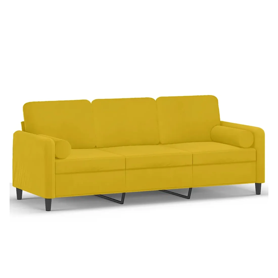 Ce canapé 3 places, qui se démarque par son design moderne et ses coussins décoratifs, sera un excellent endroit pour discuter, regarder la télévision ou simplement vous détendre. Velours doux : le velours est un tissu doux et luxueux qui se reconnaît à son tas dense de fibres uniformément coupées qui ont une touche lisse. Le tissu en velours présente un toucher doux distinctif, ce qui le rend agréable au toucher.Cadre robuste et stable : le cadre en métal du canapé de salon assure robustesse et stabilité.Housses d'oreillers amovibles : grâce à la fermeture éclair, les housses de ces oreillers de traversin sont faciles à retirer et à nettoyer en cas de besoin.Expérience d'assise confortable : le canapé est très confortable avec les sièges, les accoudoirs et les oreillers de dossier bien rembourrés. En outre, les oreillers décoratifs peuvent ajouter un confort supplémentaire lorsque vous êtes assis ou allongé.