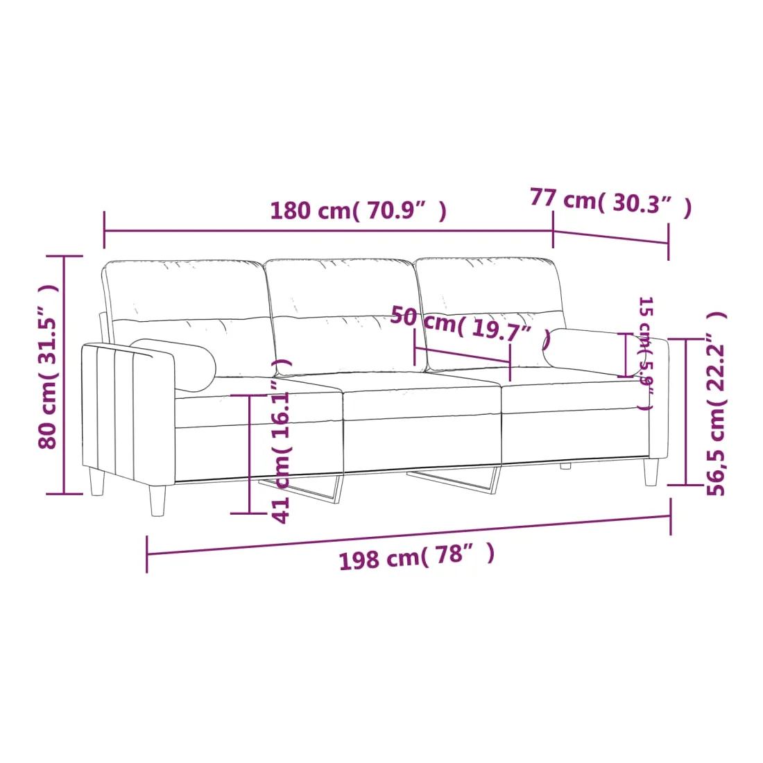 Ce canapé 3 places, qui se démarque par son design moderne et ses coussins décoratifs, sera un excellent endroit pour discuter, regarder la télévision ou simplement vous détendre. Tissu durable : le tissu présente un aspect simple et épuré tout en restant respirant et durable.Cadre robuste et stable : le cadre en métal du canapé de salon assure robustesse et stabilité.Housses d'oreillers amovibles : grâce à la fermeture éclair, les housses de ces oreillers de traversin sont faciles à retirer et à nettoyer en cas de besoin.Expérience d'assise confortable : le canapé est très confortable avec les sièges, les accoudoirs et les oreillers de dossier bien rembourrés. En outre, les oreillers décoratifs peuvent ajouter un confort supplémentaire lorsque vous êtes assis ou allongé.