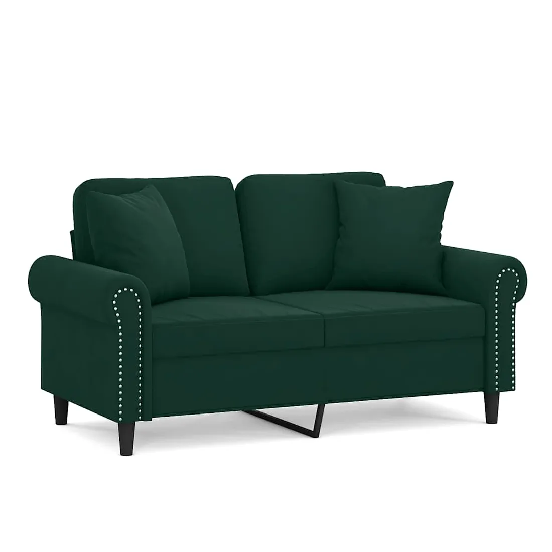 Ce canapé 2 places, qui se démarque par son design moderne et ses coussins décoratifs, sera un excellent endroit pour discuter, regarder la télévision ou simplement vous détendre. Velours doux : le velours est un tissu doux et luxueux qui se reconnaît à son tas dense de fibres uniformément coupées qui ont une touche lisse. Le tissu en velours présente un toucher doux distinctif, ce qui le rend agréable au toucher.Cadre robuste et stable : le cadre en métal du canapé de salon assure robustesse et stabilité.Oreillers décoratifs avec inserts : ces oreillers de canapé sont livrés avec des inserts en coton PP, vous n'avez donc pas besoin d'acheter des rembourrages.Expérience d'assise confortable : le canapé est très confortable avec les sièges, les accoudoirs et les oreillers de dossier bien rembourrés. En outre, les oreillers décoratifs peuvent ajouter un confort supplémentaire lorsque vous êtes assis ou allongé.