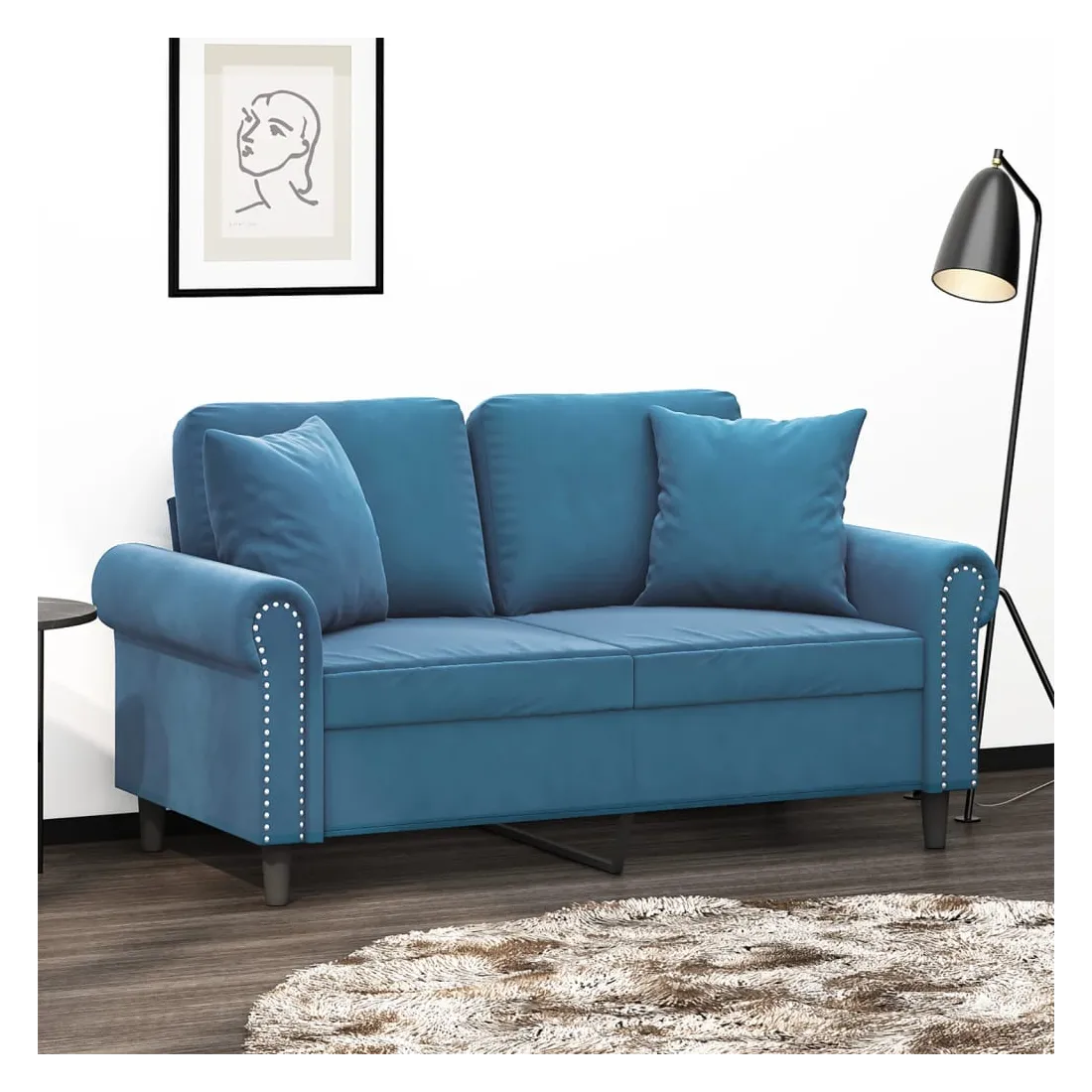 Ce canapé 2 places, qui se démarque par son design moderne et ses coussins décoratifs, sera un excellent endroit pour discuter, regarder la télévision ou simplement vous détendre. Velours doux : le velours est un tissu doux et luxueux qui se reconnaît à son tas dense de fibres uniformément coupées qui ont une touche lisse. Le tissu en velours présente un toucher doux distinctif, ce qui le rend agréable au toucher.Cadre robuste et stable : le cadre en métal du canapé de salon assure robustesse et stabilité.Oreillers décoratifs avec inserts : ces oreillers de canapé sont livrés avec des inserts en coton PP, vous n'avez donc pas besoin d'acheter des rembourrages.Expérience d'assise confortable : le canapé est très confortable avec les sièges, les accoudoirs et les oreillers de dossier bien rembourrés. En outre, les oreillers décoratifs peuvent ajouter un confort supplémentaire lorsque vous êtes assis ou allongé.
