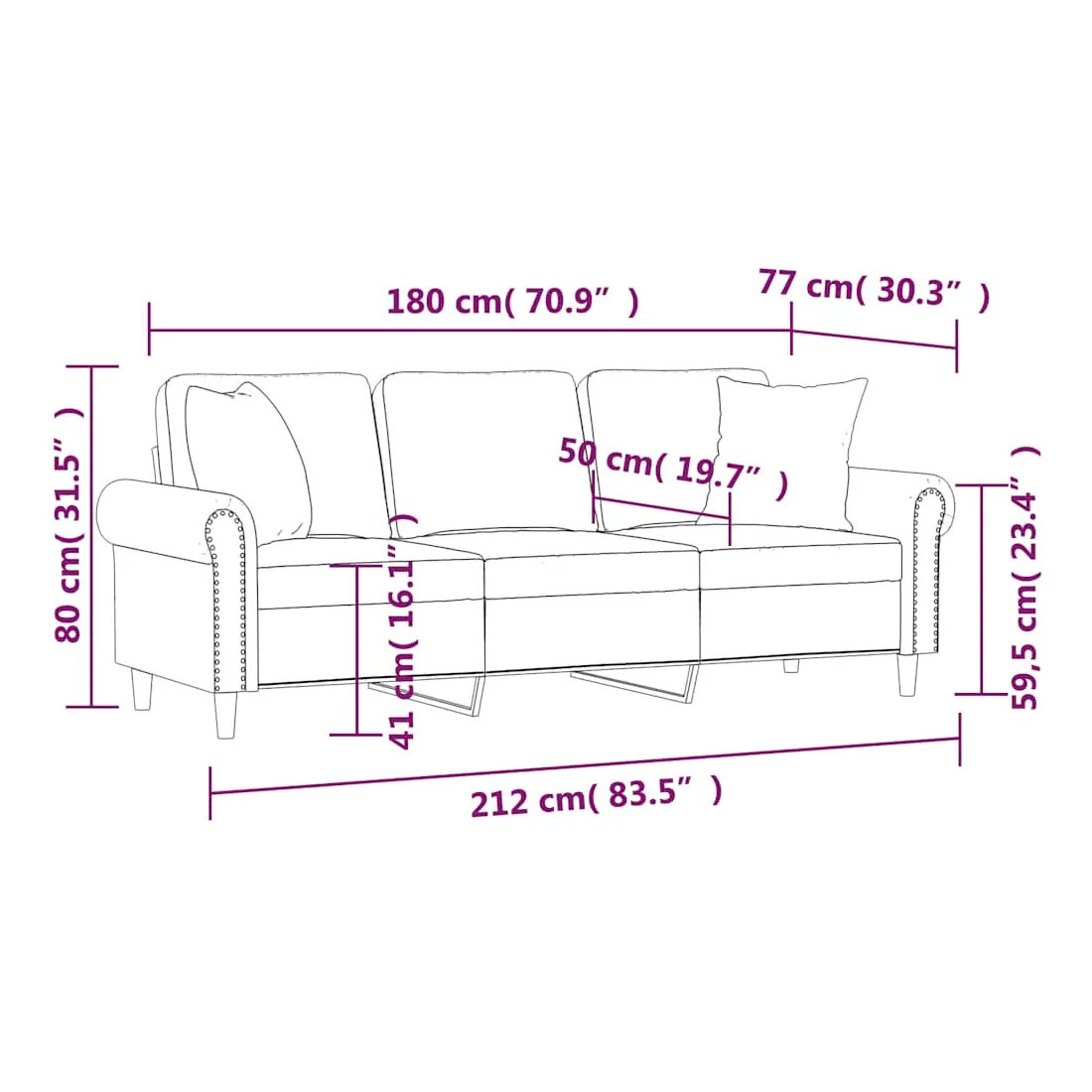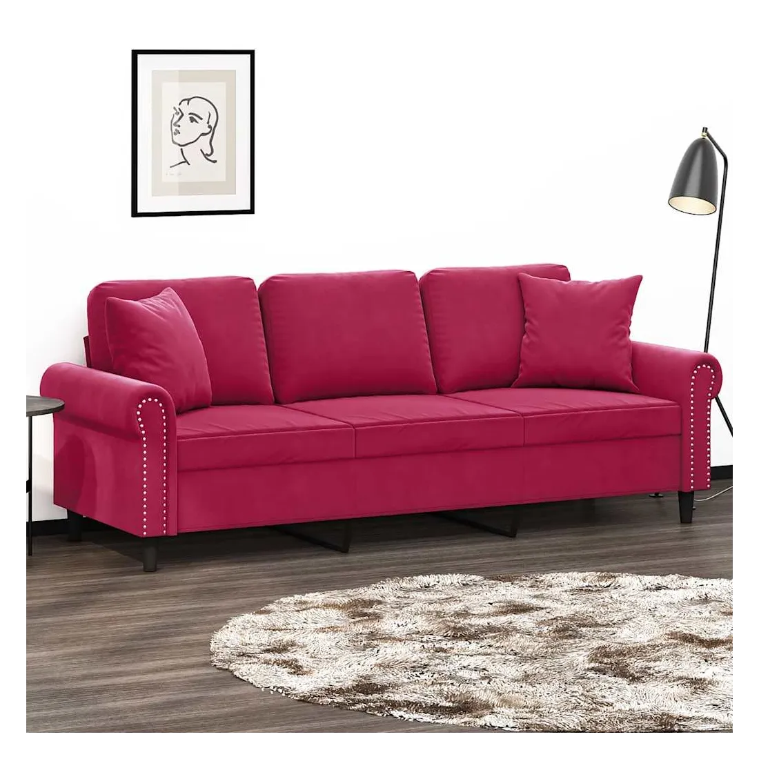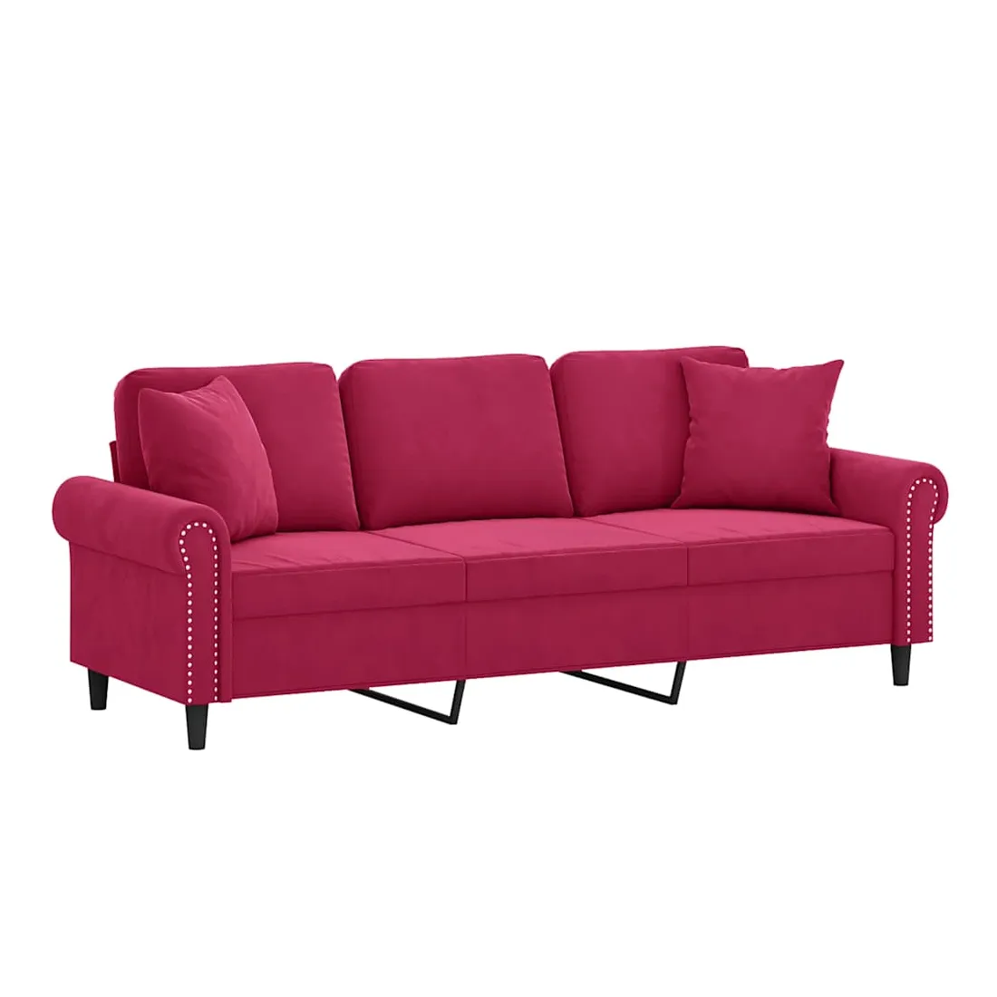 Ce canapé 3 places, qui se démarque par son design moderne et ses coussins décoratifs, sera un excellent endroit pour discuter, regarder la télévision ou simplement vous détendre. Velours doux : le velours est un tissu doux et luxueux qui se reconnaît à son tas dense de fibres uniformément coupées qui ont une touche lisse. Le tissu en velours présente un toucher doux distinctif, ce qui le rend agréable au toucher.Cadre robuste et stable : le cadre en métal du canapé de salon assure robustesse et stabilité.Oreillers décoratifs avec inserts : ces oreillers de canapé sont livrés avec des inserts en coton PP, vous n'avez donc pas besoin d'acheter des rembourrages.Expérience d'assise confortable : le canapé est très confortable avec les sièges, les accoudoirs et les oreillers de dossier bien rembourrés. En outre, les oreillers décoratifs peuvent ajouter un confort supplémentaire lorsque vous êtes assis ou allongé.