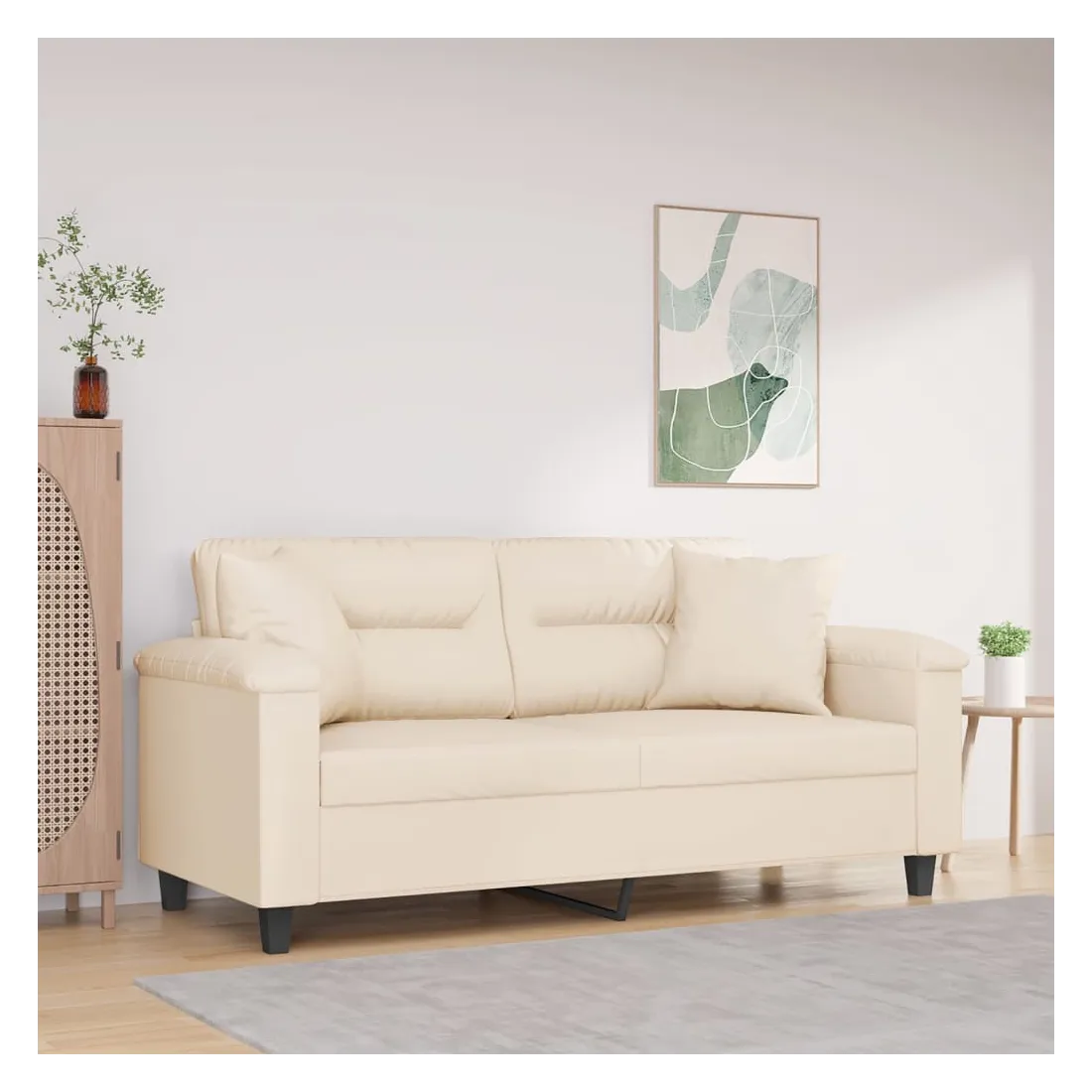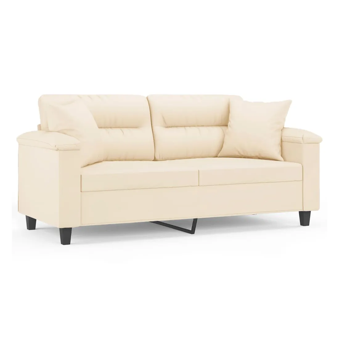 Ce canapé 2 places, qui se démarque par son design moderne et ses coussins décoratifs, sera un excellent endroit pour discuter, regarder la télévision ou simplement vous détendre. Microfibre résistant : le microfibre est un tissu synthétique composé de fibres ultra-fines, particulièrement résistantes aux taches. Le tissu en microfibre est un excellent choix pour le rembourrage des meubles en raison de sa durabilité et de son nettoyage facile.Cadre robuste et stable : le cadre en métal du canapé de salon assure robustesse et stabilité.Oreillers décoratifs avec inserts : ces oreillers décoratifs sont livrés avec des inserts en coton PP, vous n'avez donc pas besoin d'acheter des rembourrages.Expérience d'assise confortable : le canapé est très confortable avec les sièges, les accoudoirs et les oreillers de dossier bien rembourrés. En outre, les oreillers décoratifs peuvent ajouter un confort supplémentaire lorsque vous êtes assis ou allongé.