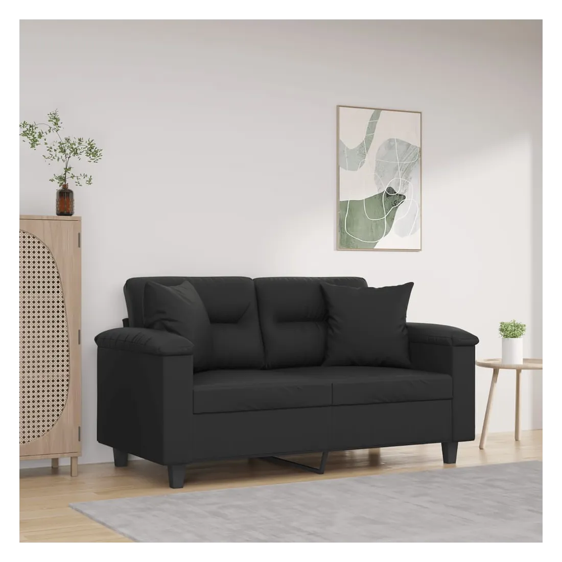 Ce canapé 2 places, qui se démarque par son design moderne et ses coussins décoratifs, sera un excellent endroit pour discuter, regarder la télévision ou simplement vous détendre. Similicuir durable : le similicuir de qualité supérieure est un matériau très durable. Il est résistant aux taches, ce qui le rend facile à nettoyer avec un chiffon humide. La surface lisse donne également un aspect luxueux et la beauté du cuir véritable.Cadre robuste et stable : le cadre en métal du canapé de salon assure robustesse et stabilité.Oreillers décoratifs avec inserts : ces oreillers décoratifs sont livrés avec des inserts en coton PP, vous n'avez donc pas besoin d'acheter des rembourrages.Expérience d'assise confortable : le canapé est très confortable avec les sièges, les accoudoirs et les oreillers de dossier bien rembourrés. En outre, les oreillers décoratifs peuvent ajouter un confort supplémentaire lorsque vous êtes assis ou allongé.