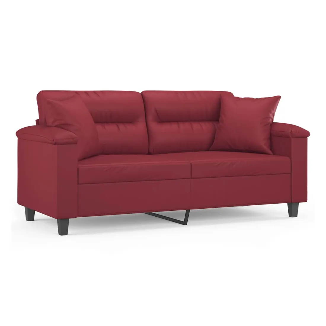 Ce canapé 2 places, qui se démarque par son design moderne et ses coussins décoratifs, sera un excellent endroit pour discuter, regarder la télévision ou simplement vous détendre. Similicuir durable : le similicuir de qualité supérieure est un matériau très durable. Il est résistant aux taches, ce qui le rend facile à nettoyer avec un chiffon humide. La surface lisse donne également un aspect luxueux et la beauté du cuir véritable.Cadre robuste et stable : le cadre en métal du canapé de salon assure robustesse et stabilité.Oreillers décoratifs avec inserts : ces oreillers décoratifs sont livrés avec des inserts en coton PP, vous n'avez donc pas besoin d'acheter des rembourrages.Expérience d'assise confortable : le canapé est très confortable avec les sièges, les accoudoirs et les oreillers de dossier bien rembourrés. En outre, les oreillers décoratifs peuvent ajouter un confort supplémentaire lorsque vous êtes assis ou allongé.