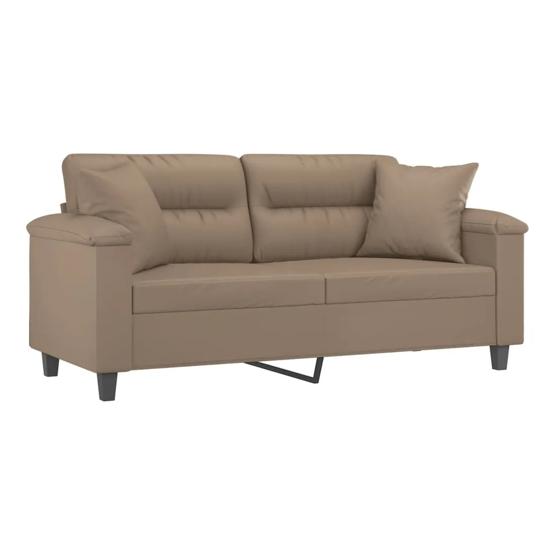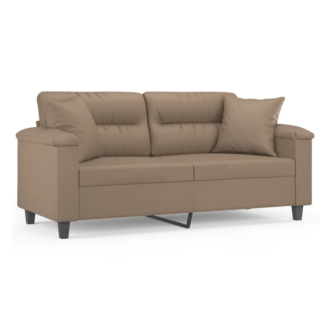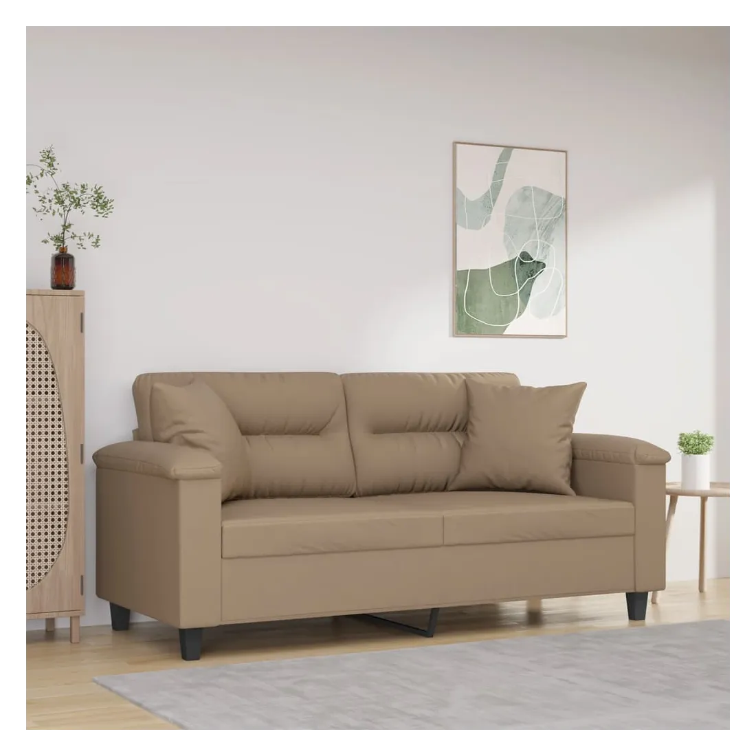 Ce canapé 2 places, qui se démarque par son design moderne et ses coussins décoratifs, sera un excellent endroit pour discuter, regarder la télévision ou simplement vous détendre. Similicuir durable : le similicuir de qualité supérieure est un matériau très durable. Il est résistant aux taches, ce qui le rend facile à nettoyer avec un chiffon humide. La surface lisse donne également un aspect luxueux et la beauté du cuir véritable.Cadre robuste et stable : le cadre en métal du canapé de salon assure robustesse et stabilité.Oreillers décoratifs avec inserts : ces oreillers décoratifs sont livrés avec des inserts en coton PP, vous n'avez donc pas besoin d'acheter des rembourrages.Expérience d'assise confortable : le canapé est très confortable avec les sièges, les accoudoirs et les oreillers de dossier bien rembourrés. En outre, les oreillers décoratifs peuvent ajouter un confort supplémentaire lorsque vous êtes assis ou allongé.
