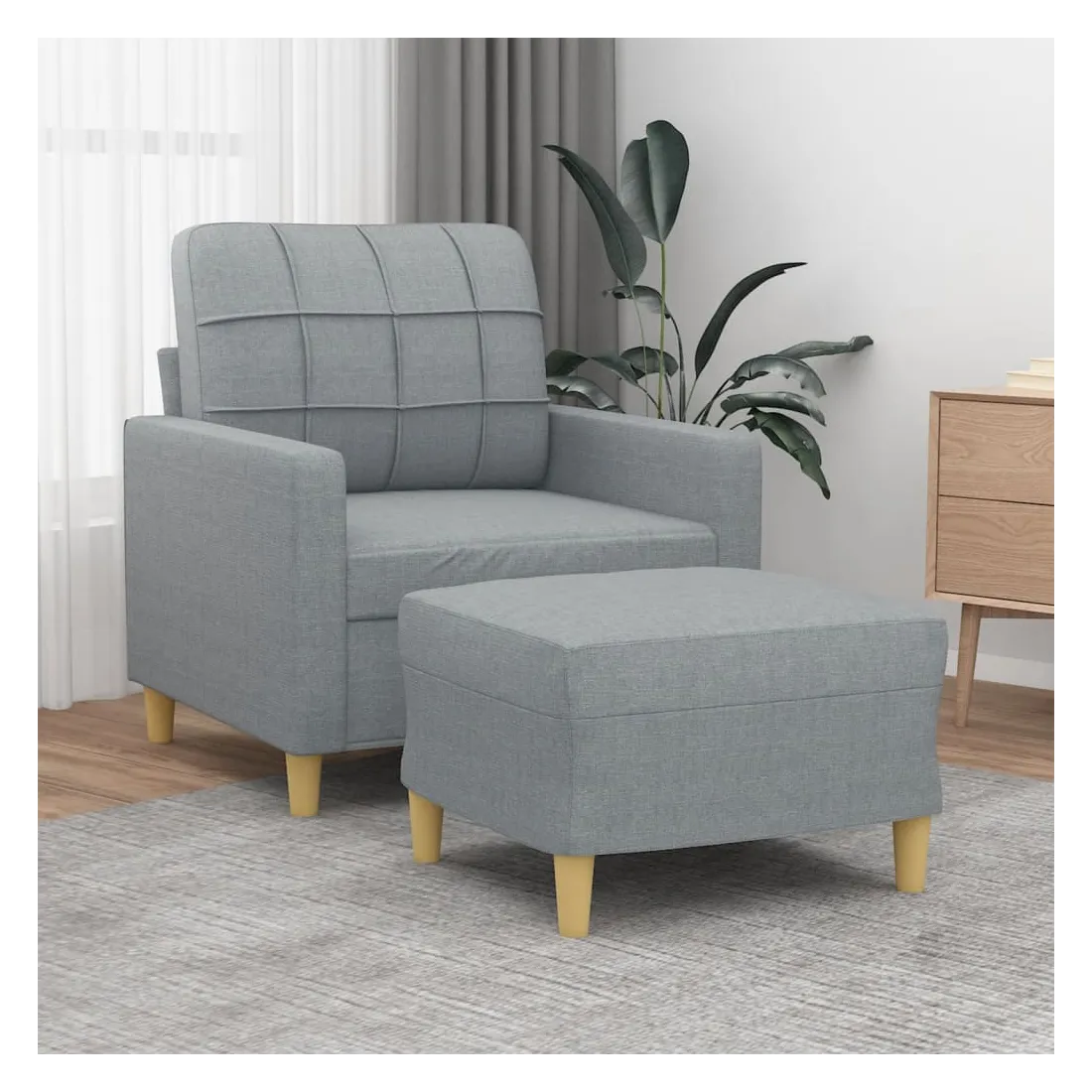Ce fauteuil avec repose-pied est un excellent endroit pour discuter, lire, regarder la télévision ou simplement vous détendre. Il est destiné à être un point central de votre maison. Tissu durable : le tissu présente un aspect simple et épuré tout en restant respirant et durable.Structure robuste et stable : la structure en contreplaqué et en métal du canapé avec repose-pieds assure robustesse et stabilité.Expérience d'assise confortable : le fauteuil est très confortable avec le siège, les accoudoirs et le coussin de dossier bien rembourrés.Repose-pied polyvalent : ce repose-pied convient pour reposer vos pieds lorsque vous êtes allongé dans un canapé ou un fauteuil inclinable, ou pour vous offrir un siège supplémentaire dans votre pièce. De plus, le design simple et la taille compacte le rendent idéal pour presque tous vos espaces de vie.Design accrocheur : doté d'un design simple mais moderne, ce canapé avec repose-pied est destiné à attirer l'attention dans votre pièce.