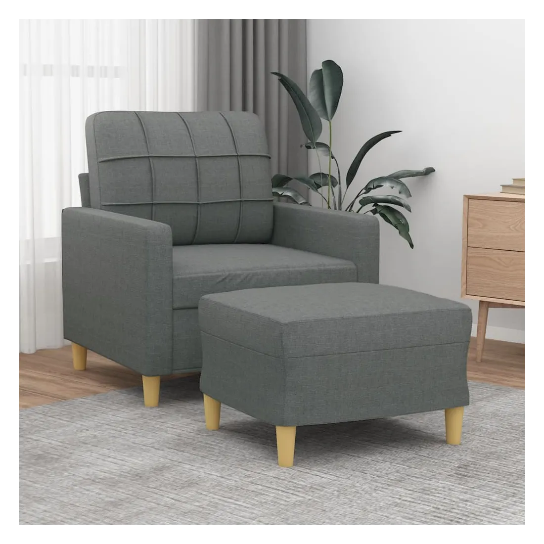 Ce fauteuil avec repose-pied est un excellent endroit pour discuter, lire, regarder la télévision ou simplement vous détendre. Il est destiné à être un point central de votre maison. Tissu durable : le tissu présente un aspect simple et épuré tout en restant respirant et durable.Structure robuste et stable : la structure en contreplaqué et en métal du canapé avec repose-pieds assure robustesse et stabilité.Expérience d'assise confortable : le fauteuil est très confortable avec le siège, les accoudoirs et le coussin de dossier bien rembourrés.Repose-pied polyvalent : ce repose-pied convient pour reposer vos pieds lorsque vous êtes allongé dans un canapé ou un fauteuil inclinable, ou pour vous offrir un siège supplémentaire dans votre pièce. De plus, le design simple et la taille compacte le rendent idéal pour presque tous vos espaces de vie.Design accrocheur : doté d'un design simple mais moderne, ce canapé avec repose-pied est destiné à attirer l'attention dans votre pièce.