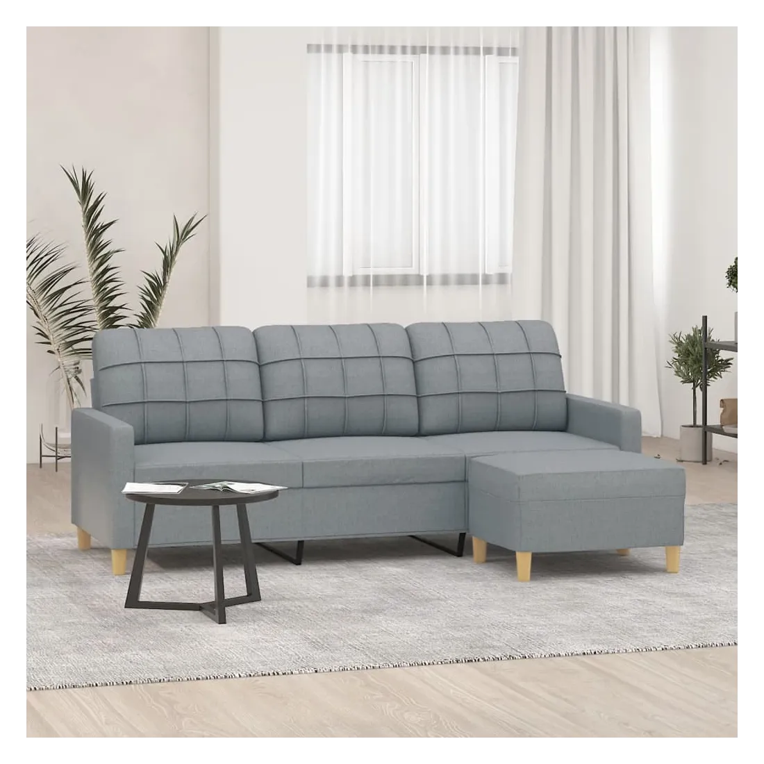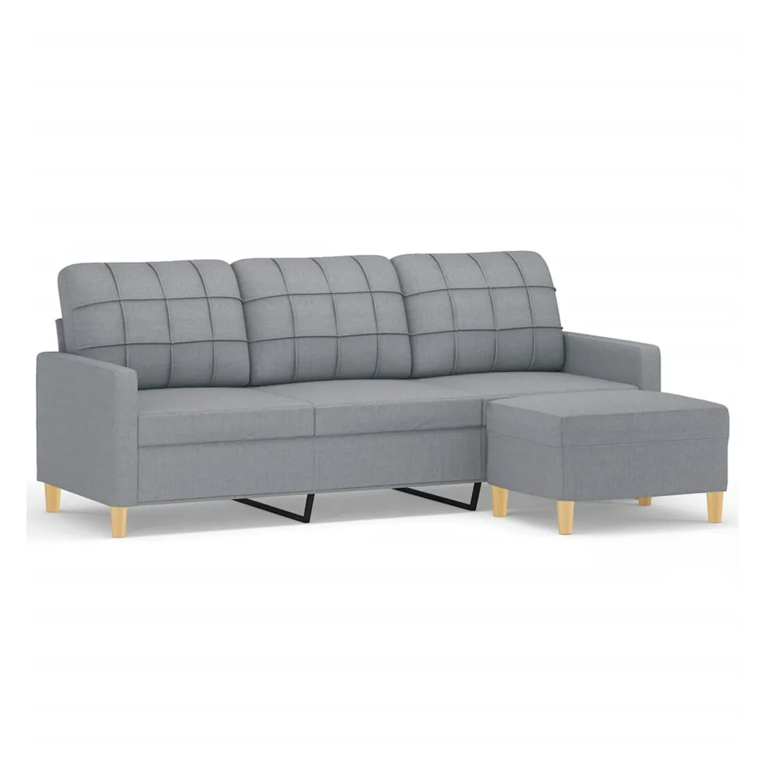 Ce canapé à 3 places avec repose-pieds est un excellent endroit pour discuter, lire, regarder la télévision ou simplement vous détendre. Il est destiné à être un point central dans votre maison. Tissu durable : le tissu présente un aspect simple et épuré tout en restant respirant et durable.Structure robuste et stable : la structure en contreplaqué et en métal du canapé avec repose-pieds assure robustesse et stabilité.Expérience d'assise confortable : le fauteuil est très confortable avec les sièges, les accoudoirs et les coussins de dossier bien rembourrés.Repose-pied polyvalent : ce repose-pied convient pour reposer vos pieds lorsque vous êtes allongé dans un canapé ou un fauteuil inclinable, ou pour vous offrir un siège supplémentaire dans votre pièce. De plus, le design simple et la taille compacte le rendent idéal pour presque tous vos espaces de vie.Design accrocheur : doté d'un design simple mais moderne, ce canapé avec repose-pied est destiné à attirer l'attention dans votre pièce.