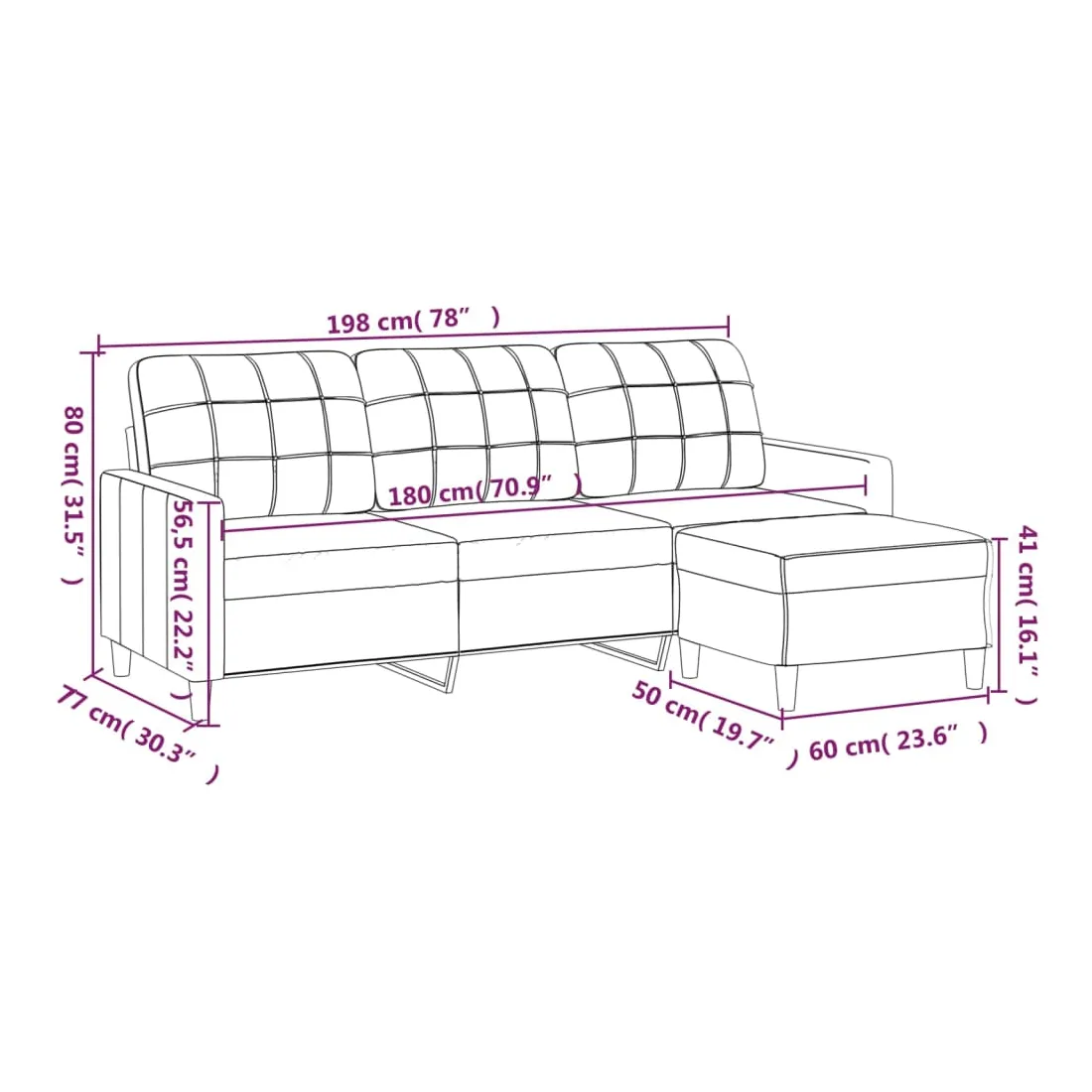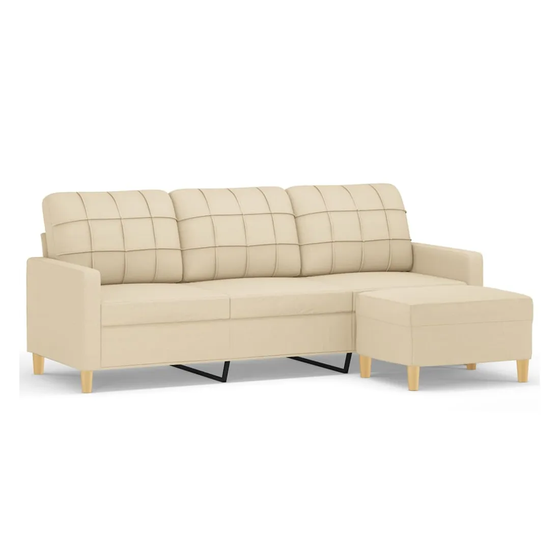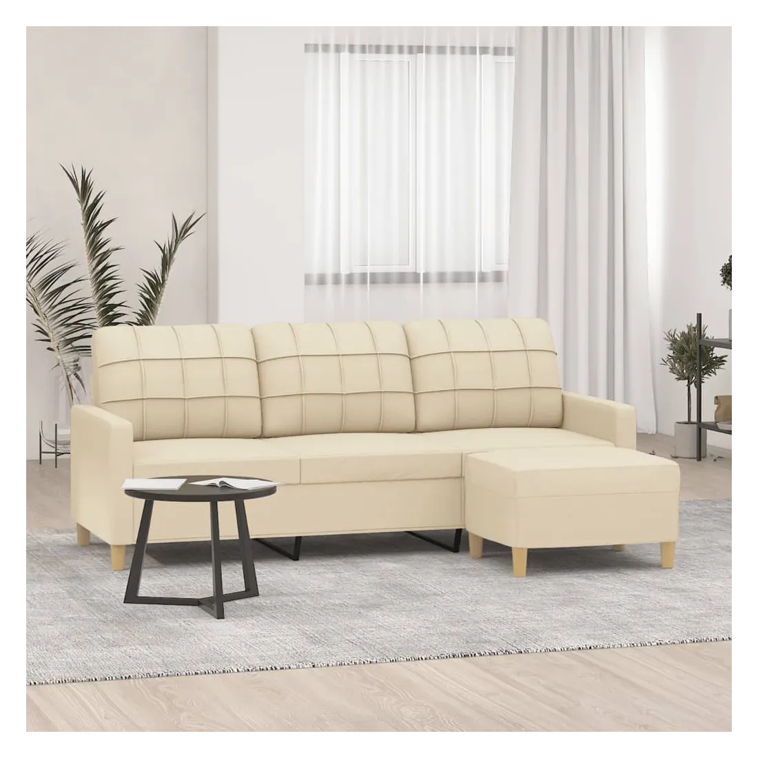 Ce canapé à 3 places avec repose-pieds est un excellent endroit pour discuter, lire, regarder la télévision ou simplement vous détendre. Il est destiné à être un point central dans votre maison. Tissu durable : le tissu présente un aspect simple et épuré tout en restant respirant et durable.Structure robuste et stable : la structure en contreplaqué et en métal du canapé avec repose-pieds assure robustesse et stabilité.Expérience d'assise confortable : le fauteuil est très confortable avec les sièges, les accoudoirs et les coussins de dossier bien rembourrés.Repose-pied polyvalent : ce repose-pied convient pour reposer vos pieds lorsque vous êtes allongé dans un canapé ou un fauteuil inclinable, ou pour vous offrir un siège supplémentaire dans votre pièce. De plus, le design simple et la taille compacte le rendent idéal pour presque tous vos espaces de vie.Design accrocheur : doté d'un design simple mais moderne, ce canapé avec repose-pied est destiné à attirer l'attention dans votre pièce.
