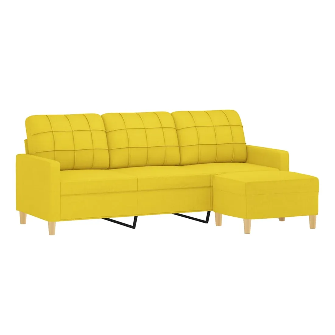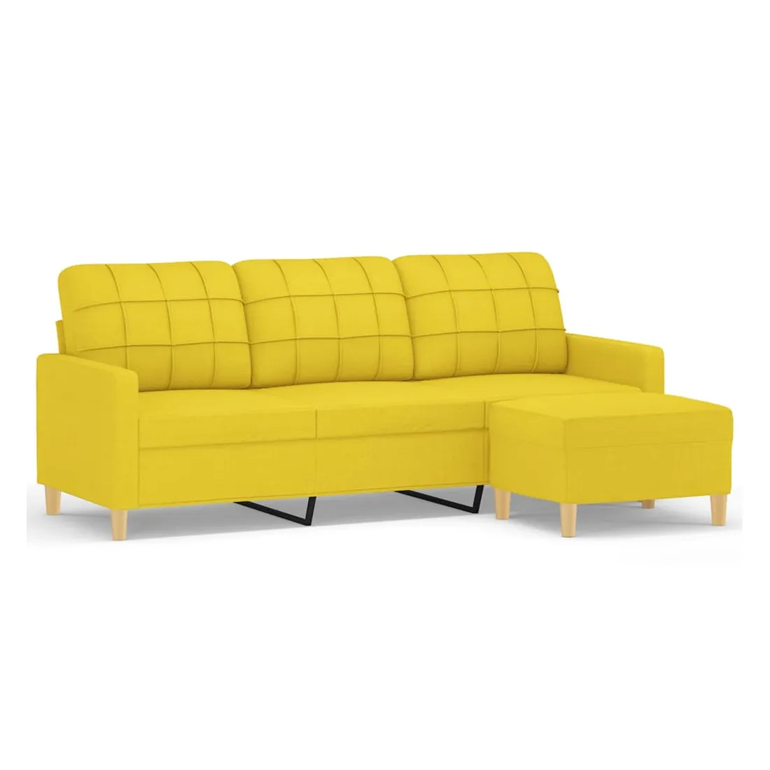 Ce canapé à 3 places avec repose-pieds est un excellent endroit pour discuter, lire, regarder la télévision ou simplement vous détendre. Il est destiné à être un point central dans votre maison. Tissu durable : le tissu présente un aspect simple et épuré tout en restant respirant et durable.Structure robuste et stable : la structure en contreplaqué et en métal du canapé avec repose-pieds assure robustesse et stabilité.Expérience d'assise confortable : le fauteuil est très confortable avec les sièges, les accoudoirs et les coussins de dossier bien rembourrés.Repose-pied polyvalent : ce repose-pied convient pour reposer vos pieds lorsque vous êtes allongé dans un canapé ou un fauteuil inclinable, ou pour vous offrir un siège supplémentaire dans votre pièce. De plus, le design simple et la taille compacte le rendent idéal pour presque tous vos espaces de vie.Design accrocheur : doté d'un design simple mais moderne, ce canapé avec repose-pied est destiné à attirer l'attention dans votre pièce.