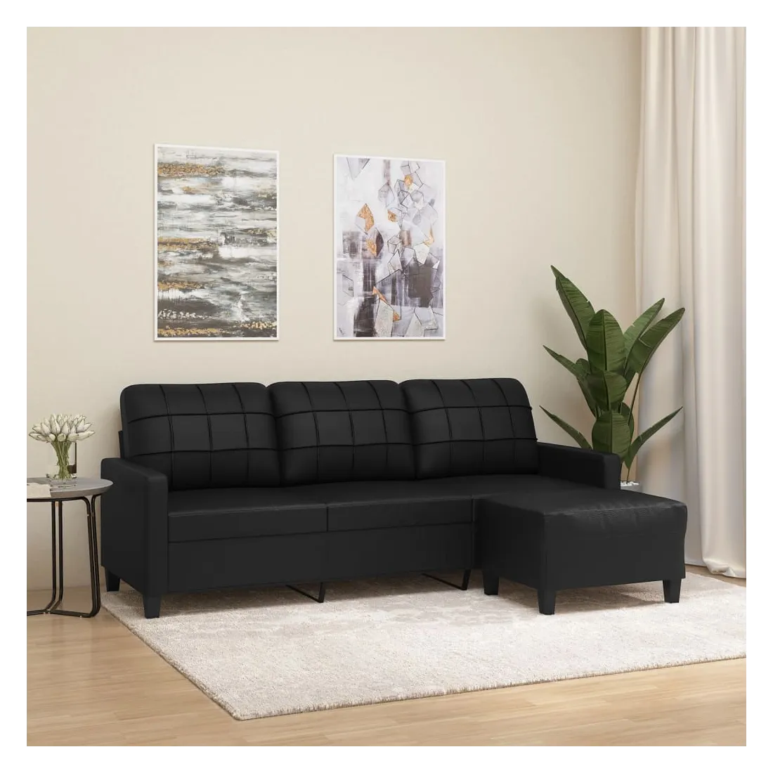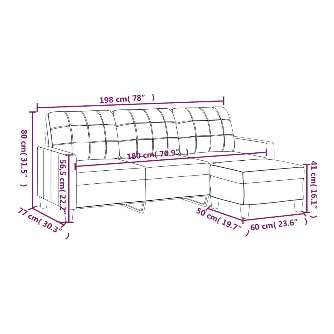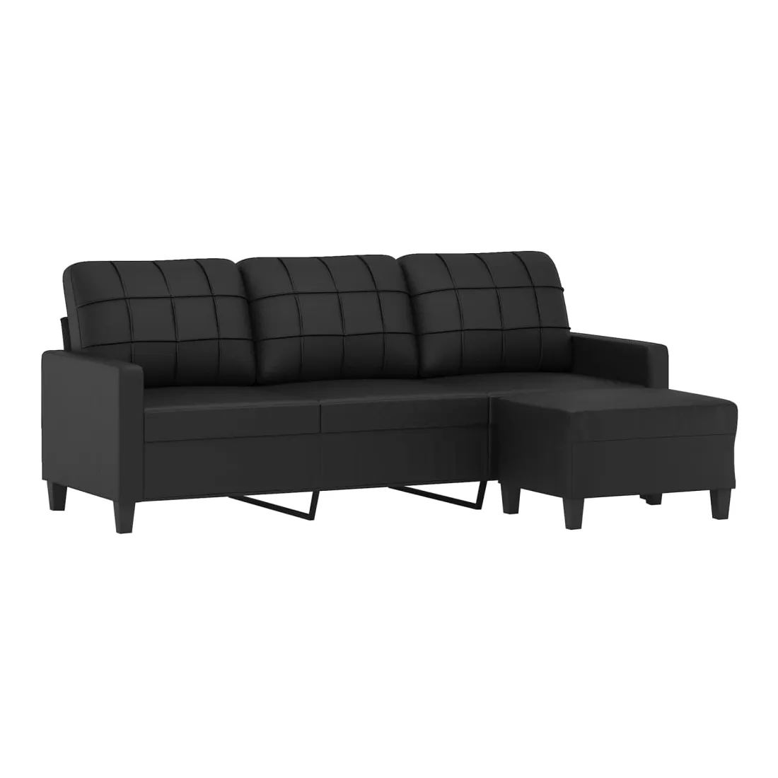 Ce canapé à 3 places avec repose-pieds est un excellent endroit pour discuter, lire, regarder la télévision ou simplement vous détendre. Il est destiné à être un point central dans votre maison. Similicuir durable : le similicuir de qualité supérieure est un matériau très durable. Il est résistant aux taches, ce qui le rend facile à nettoyer avec un chiffon humide. La surface lisse donne également un aspect luxueux et la beauté du cuir véritable.Structure robuste et stable : la structure en contreplaqué et en métal du canapé avec repose-pieds assure robustesse et stabilité.Expérience d'assise confortable : le fauteuil est très confortable avec les sièges, les accoudoirs et les coussins de dossier bien rembourrés.Repose-pied polyvalent : ce repose-pied convient pour reposer vos pieds lorsque vous êtes allongé dans un canapé ou un fauteuil inclinable, ou pour vous offrir un siège supplémentaire dans votre pièce. De plus, le design simple et la taille compacte le rendent idéal pour presque tous vos espaces de vie.Design accrocheur : doté d'un design simple mais moderne, ce canapé avec repose-pied est destiné à attirer l'attention dans votre pièce.