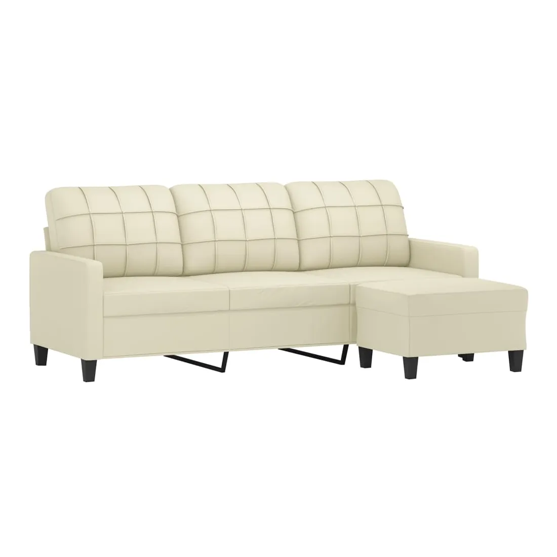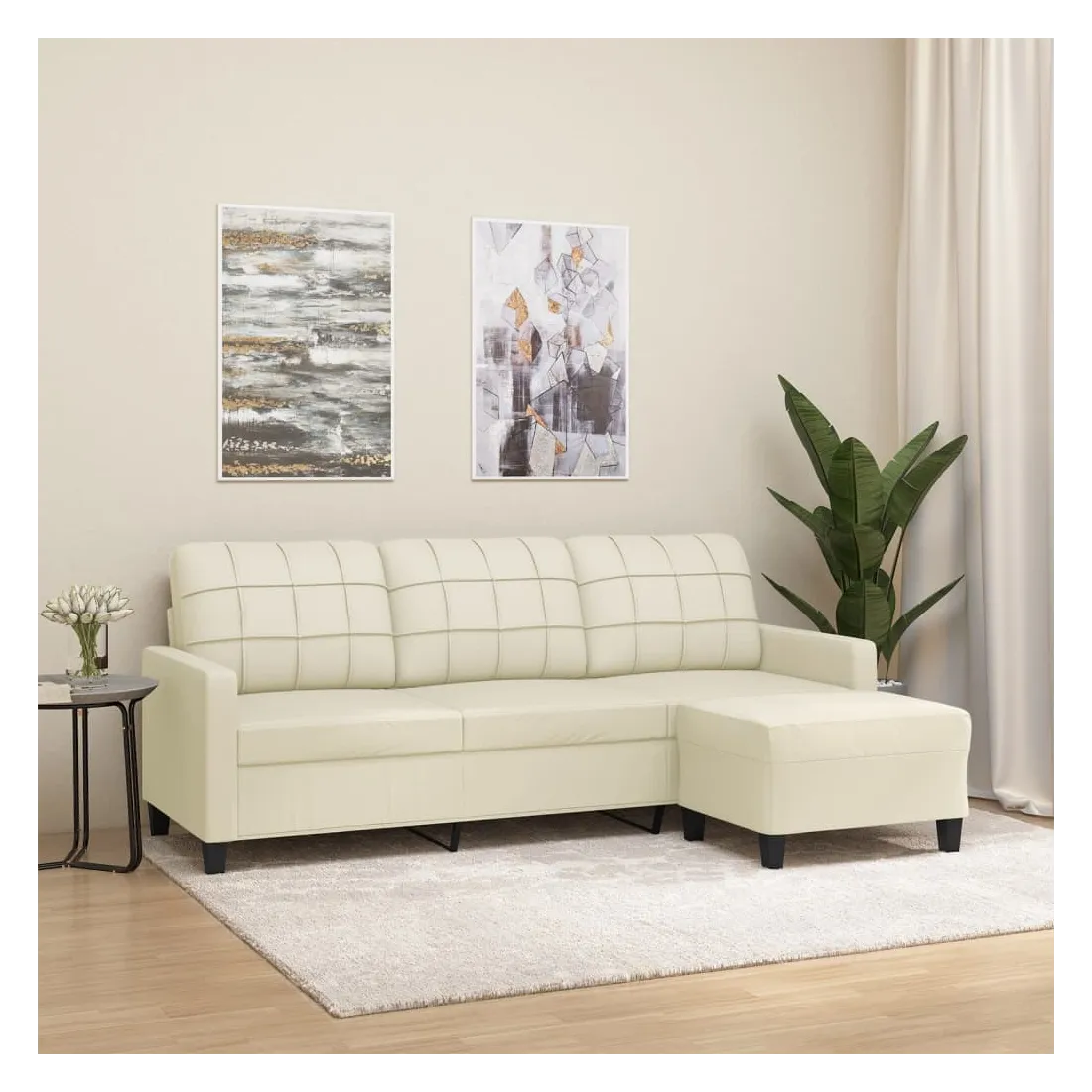 Ce canapé à 3 places avec repose-pieds est un excellent endroit pour discuter, lire, regarder la télévision ou simplement vous détendre. Il est destiné à être un point central dans votre maison. Similicuir durable : le similicuir de qualité supérieure est un matériau très durable. Il est résistant aux taches, ce qui le rend facile à nettoyer avec un chiffon humide. La surface lisse donne également un aspect luxueux et la beauté du cuir véritable.Structure robuste et stable : la structure en contreplaqué et en métal du canapé avec repose-pieds assure robustesse et stabilité.Expérience d'assise confortable : le fauteuil est très confortable avec les sièges, les accoudoirs et les coussins de dossier bien rembourrés.Repose-pied polyvalent : ce repose-pied convient pour reposer vos pieds lorsque vous êtes allongé dans un canapé ou un fauteuil inclinable, ou pour vous offrir un siège supplémentaire dans votre pièce. De plus, le design simple et la taille compacte le rendent idéal pour presque tous vos espaces de vie.Design accrocheur : doté d'un design simple mais moderne, ce canapé avec repose-pied est destiné à attirer l'attention dans votre pièce.