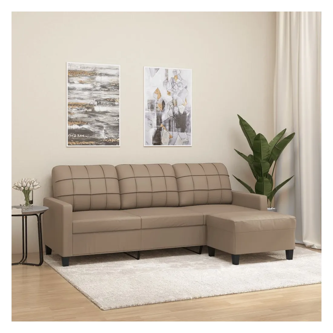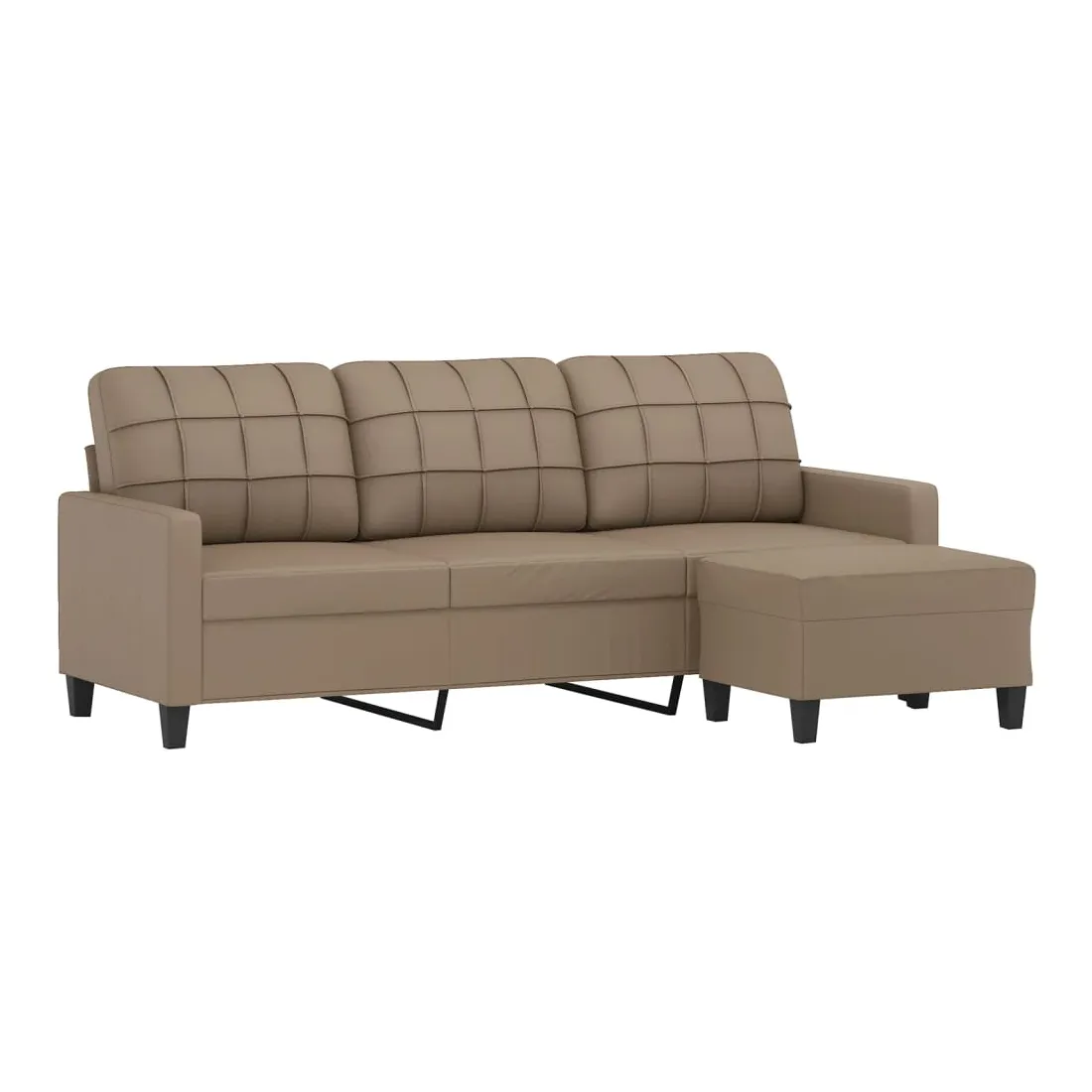 Ce canapé à 3 places avec repose-pieds est un excellent endroit pour discuter, lire, regarder la télévision ou simplement vous détendre. Il est destiné à être un point central dans votre maison. Similicuir durable : le similicuir de qualité supérieure est un matériau très durable. Il est résistant aux taches, ce qui le rend facile à nettoyer avec un chiffon humide. La surface lisse donne également un aspect luxueux et la beauté du cuir véritable.Structure robuste et stable : la structure en contreplaqué et en métal du canapé avec repose-pieds assure robustesse et stabilité.Expérience d'assise confortable : le fauteuil est très confortable avec les sièges, les accoudoirs et les coussins de dossier bien rembourrés.Repose-pied polyvalent : ce repose-pied convient pour reposer vos pieds lorsque vous êtes allongé dans un canapé ou un fauteuil inclinable, ou pour vous offrir un siège supplémentaire dans votre pièce. De plus, le design simple et la taille compacte le rendent idéal pour presque tous vos espaces de vie.Design accrocheur : doté d'un design simple mais moderne, ce canapé avec repose-pied est destiné à attirer l'attention dans votre pièce.