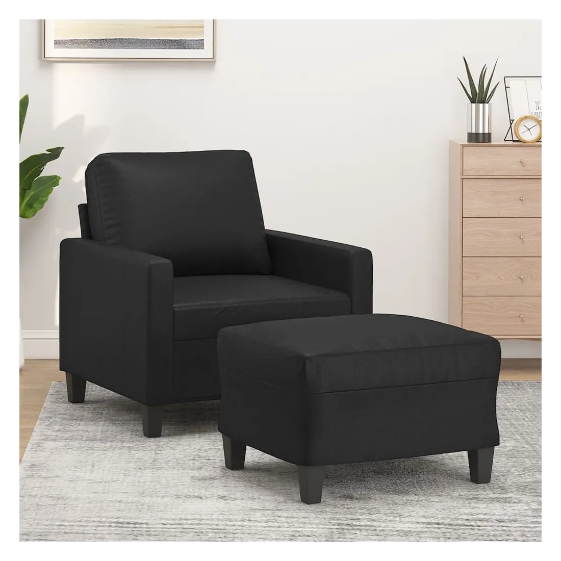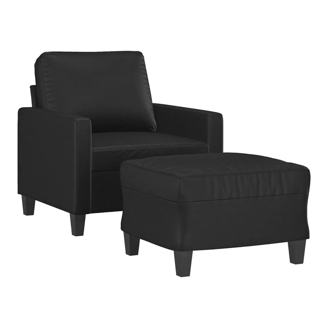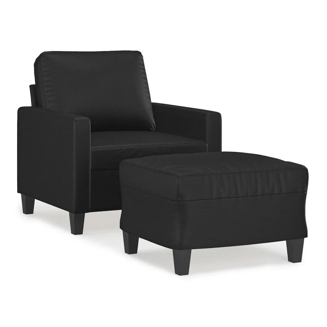Ce fauteuil avec repose-pied est un excellent endroit pour discuter, lire, regarder la télévision ou simplement vous détendre. Il est destiné à être un point central de votre maison. Similicuir durable : le similicuir de qualité supérieure est un matériau très durable. Il est résistant aux taches, ce qui le rend facile à nettoyer avec un chiffon humide. La surface lisse donne également un aspect luxueux et la beauté du cuir véritable.Structure robuste et stable : la structure en contreplaqué et en métal du canapé avec repose-pieds assure robustesse et stabilité.Expérience d'assise confortable : le fauteuil est très confortable avec le siège, les accoudoirs et le coussin de dossier bien rembourrés.Repose-pied polyvalent : ce repose-pied convient pour reposer vos pieds lorsque vous êtes allongé dans un canapé ou un fauteuil inclinable, ou pour vous offrir un siège supplémentaire dans votre pièce. De plus, le design simple et la taille compacte le rendent idéal pour presque tous vos espaces de vie.Design accrocheur : doté d'un design simple mais moderne, ce canapé avec repose-pied est destiné à attirer l'attention dans votre pièce.