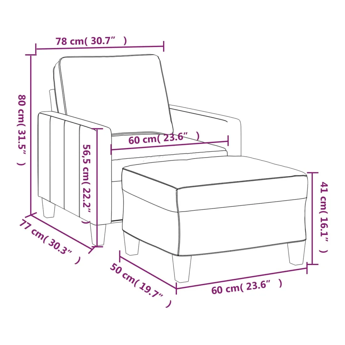 Ce fauteuil avec repose-pied est un excellent endroit pour discuter, lire, regarder la télévision ou simplement vous détendre. Il est destiné à être un point central de votre maison. Tissu durable : le tissu présente un aspect simple et épuré tout en restant respirant et durable.Structure robuste et stable : la structure en contreplaqué et en métal du canapé avec repose-pieds assure robustesse et stabilité.Expérience d'assise confortable : le fauteuil est très confortable avec le siège, les accoudoirs et le coussin de dossier bien rembourrés.Repose-pied polyvalent : ce repose-pied convient pour reposer vos pieds lorsque vous êtes allongé dans un canapé ou un fauteuil inclinable, ou pour vous offrir un siège supplémentaire dans votre pièce. De plus, le design simple et la taille compacte le rendent idéal pour presque tous vos espaces de vie.Design accrocheur : doté d'un design simple mais moderne, ce canapé avec repose-pied est destiné à attirer l'attention dans votre pièce.