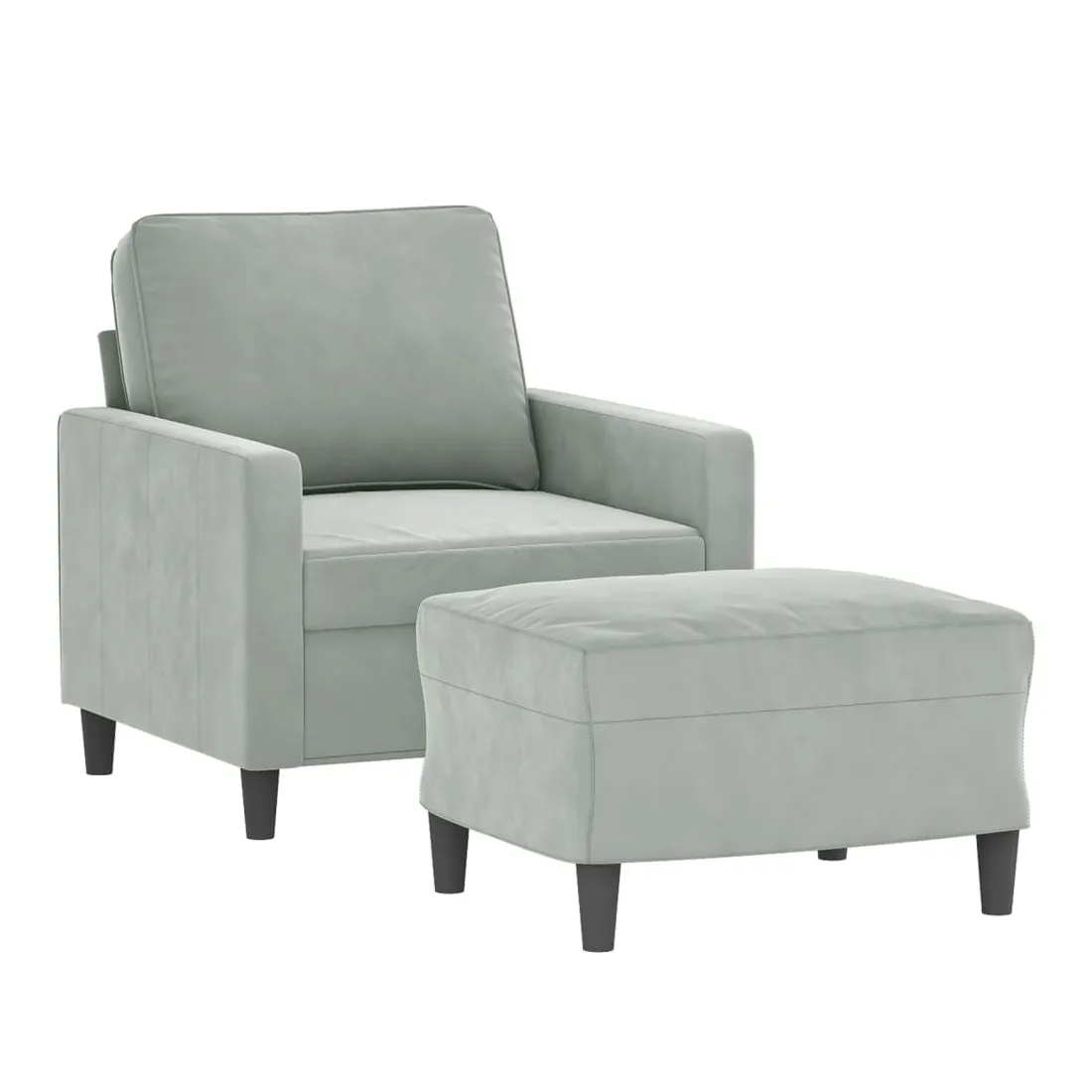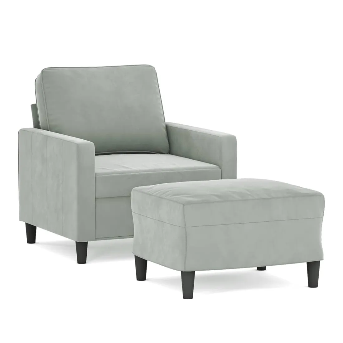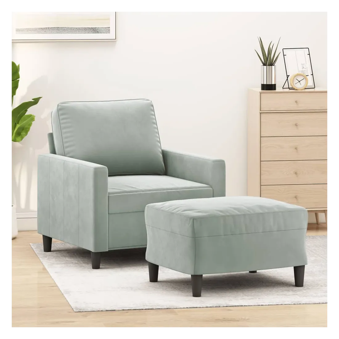 Ce fauteuil avec repose-pied est un excellent endroit pour discuter, lire, regarder la télévision ou simplement vous détendre. Il est destiné à être un point central de votre maison. Velours durable : le velours est un tissu doux et confortable, agréable au toucher.Structure robuste et stable : la structure en contreplaqué et en métal du canapé avec repose-pieds assure robustesse et stabilité.Expérience d'assise confortable : le fauteuil est très confortable avec le siège, les accoudoirs et le coussin de dossier bien rembourrés.Repose-pied polyvalent : ce repose-pied convient pour reposer vos pieds lorsque vous êtes allongé dans un canapé ou un fauteuil inclinable, ou pour vous offrir un siège supplémentaire dans votre pièce. De plus, le design simple et la taille compacte le rendent idéal pour presque tous vos espaces de vie.Design accrocheur : doté d'un design simple mais moderne, ce canapé avec repose-pied est destiné à attirer l'attention dans votre pièce.