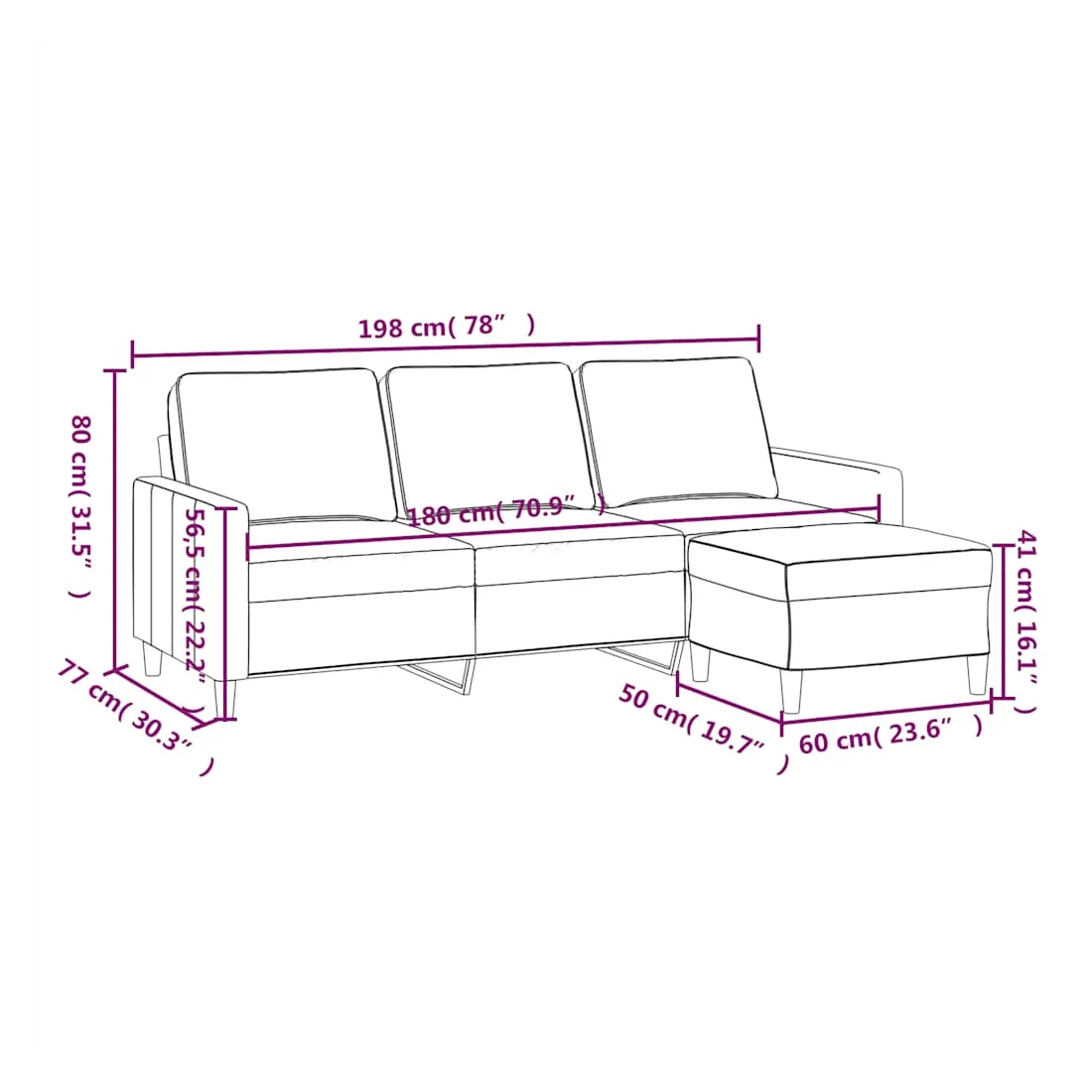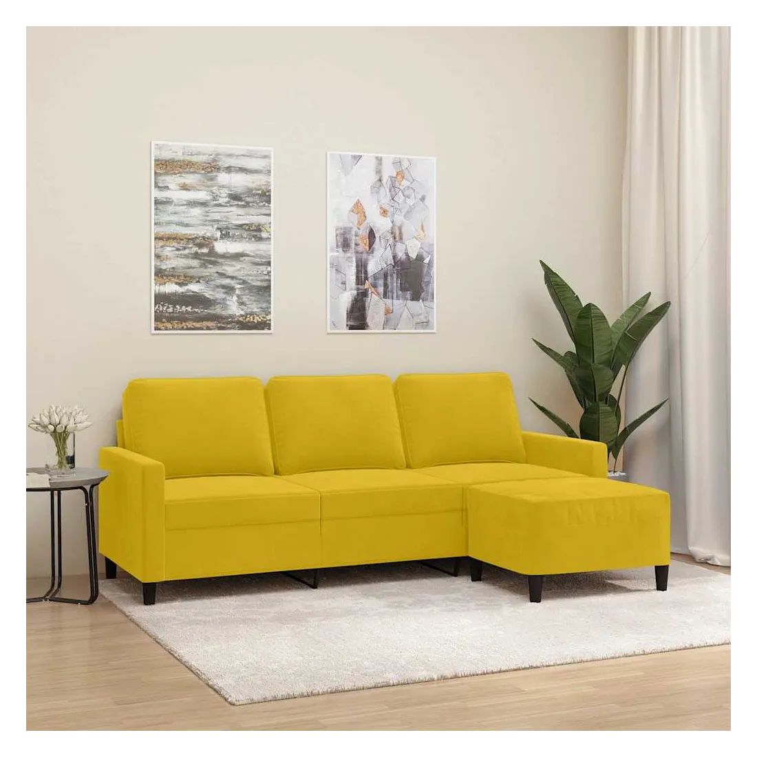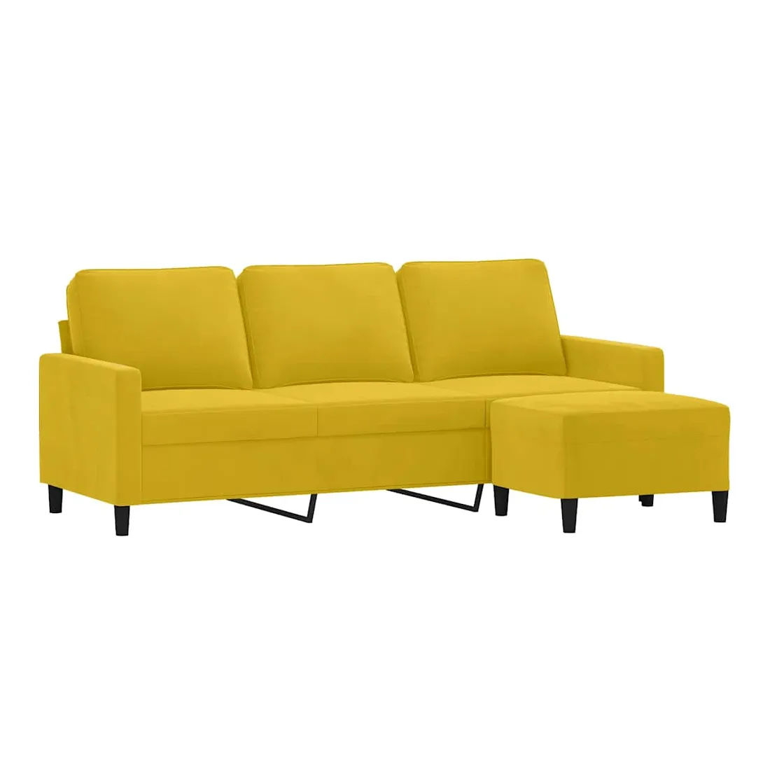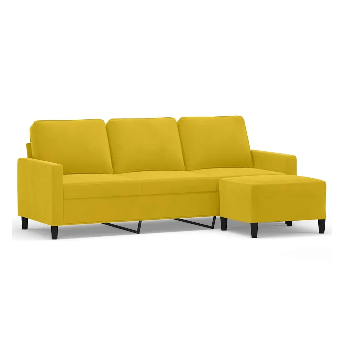 Ce canapé à 3 places avec repose-pieds est un excellent endroit pour discuter, lire, regarder la télévision ou simplement vous détendre. Il est destiné à être un point central dans votre maison. Velours durable : le velours est un tissu doux et confortable, agréable au toucher.Structure robuste et stable : la structure en contreplaqué et en métal du canapé avec repose-pieds assure robustesse et stabilité.Expérience d'assise confortable : le fauteuil est très confortable avec les sièges, les accoudoirs et les coussins de dossier bien rembourrés.Repose-pied polyvalent : ce repose-pied convient pour reposer vos pieds lorsque vous êtes allongé dans un canapé ou un fauteuil inclinable, ou pour vous offrir un siège supplémentaire dans votre pièce. De plus, le design simple et la taille compacte le rendent idéal pour presque tous vos espaces de vie.Design accrocheur : doté d'un design simple mais moderne, ce canapé avec repose-pied est destiné à attirer l'attention dans votre pièce.