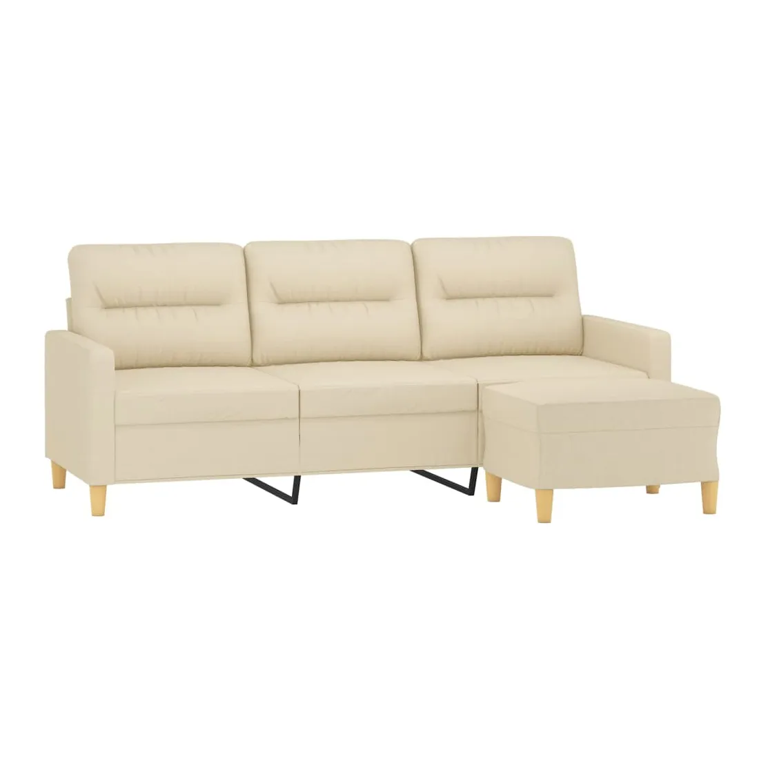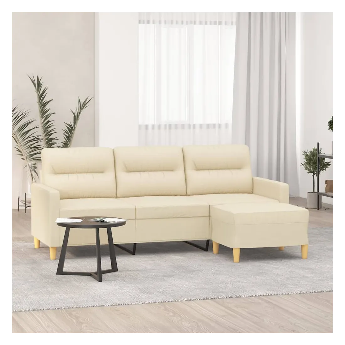Canapé à 3 places avec repose-pieds Crème 180 cm Tissu