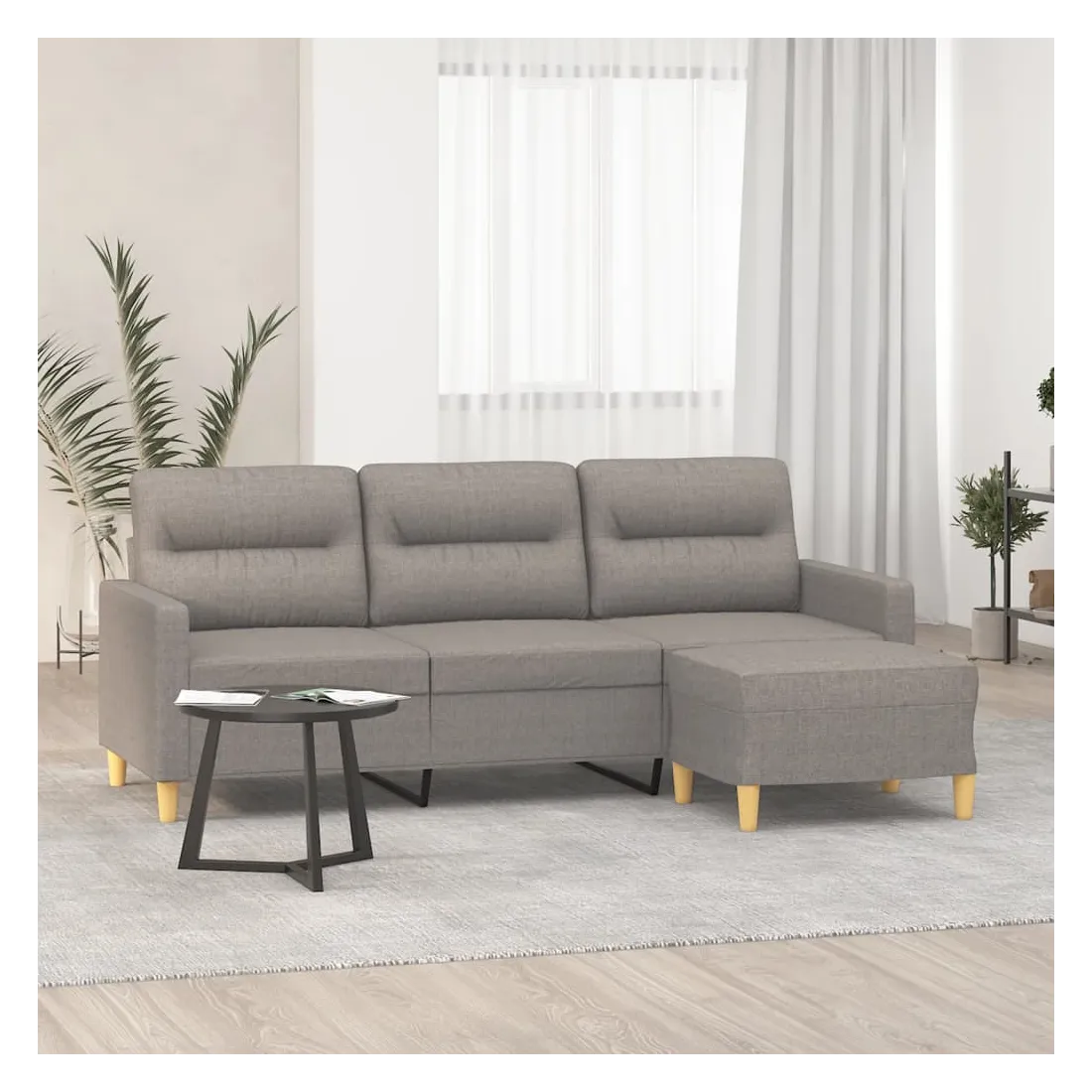 Ce canapé à 3 places avec repose-pieds est un excellent endroit pour discuter, lire, regarder la télévision ou simplement vous détendre. Il est destiné à être un point central dans votre maison. Tissu durable : le tissu présente un aspect simple et épuré tout en restant respirant et durable.Structure robuste et stable : la structure en contreplaqué et en métal du canapé avec repose-pieds assure robustesse et stabilité.Expérience d'assise confortable : le fauteuil est très confortable avec les sièges, les accoudoirs et les coussins de dossier bien rembourrés.Repose-pied polyvalent : ce repose-pied convient pour reposer vos pieds lorsque vous êtes allongé dans un canapé ou un fauteuil inclinable, ou pour vous offrir un siège supplémentaire dans votre pièce. De plus, le design simple et la taille compacte le rendent idéal pour presque tous vos espaces de vie.Design accrocheur : doté d'un design simple mais moderne, ce canapé avec repose-pied est destiné à attirer l'attention dans votre pièce.
