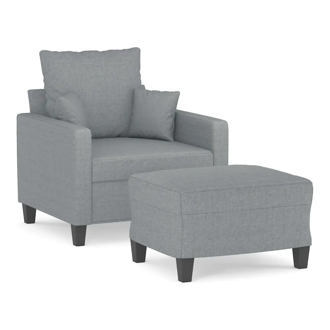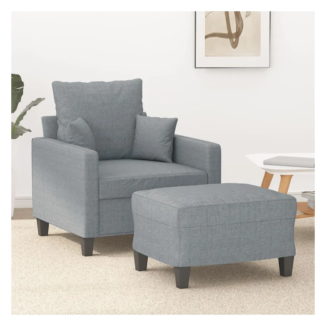 Ce fauteuil avec repose-pied est un excellent endroit pour discuter, lire, regarder la télévision ou simplement vous détendre. Il est destiné à être un point central de votre maison. Tissu durable : le tissu présente un aspect simple et épuré tout en restant respirant et durable.Structure robuste et stable : la structure en contreplaqué et en métal du canapé avec repose-pieds assure robustesse et stabilité.Expérience d'assise confortable : le fauteuil est très confortable avec le siège, les accoudoirs et le coussin de dossier bien rembourrés.Repose-pied polyvalent : ce repose-pied convient pour reposer vos pieds lorsque vous êtes allongé dans un canapé ou un fauteuil inclinable, ou pour vous offrir un siège supplémentaire dans votre pièce. De plus, le design simple et la taille compacte le rendent idéal pour presque tous vos espaces de vie.Design accrocheur : doté d'un design simple mais moderne, ce canapé avec repose-pied est destiné à attirer l'attention dans votre pièce.