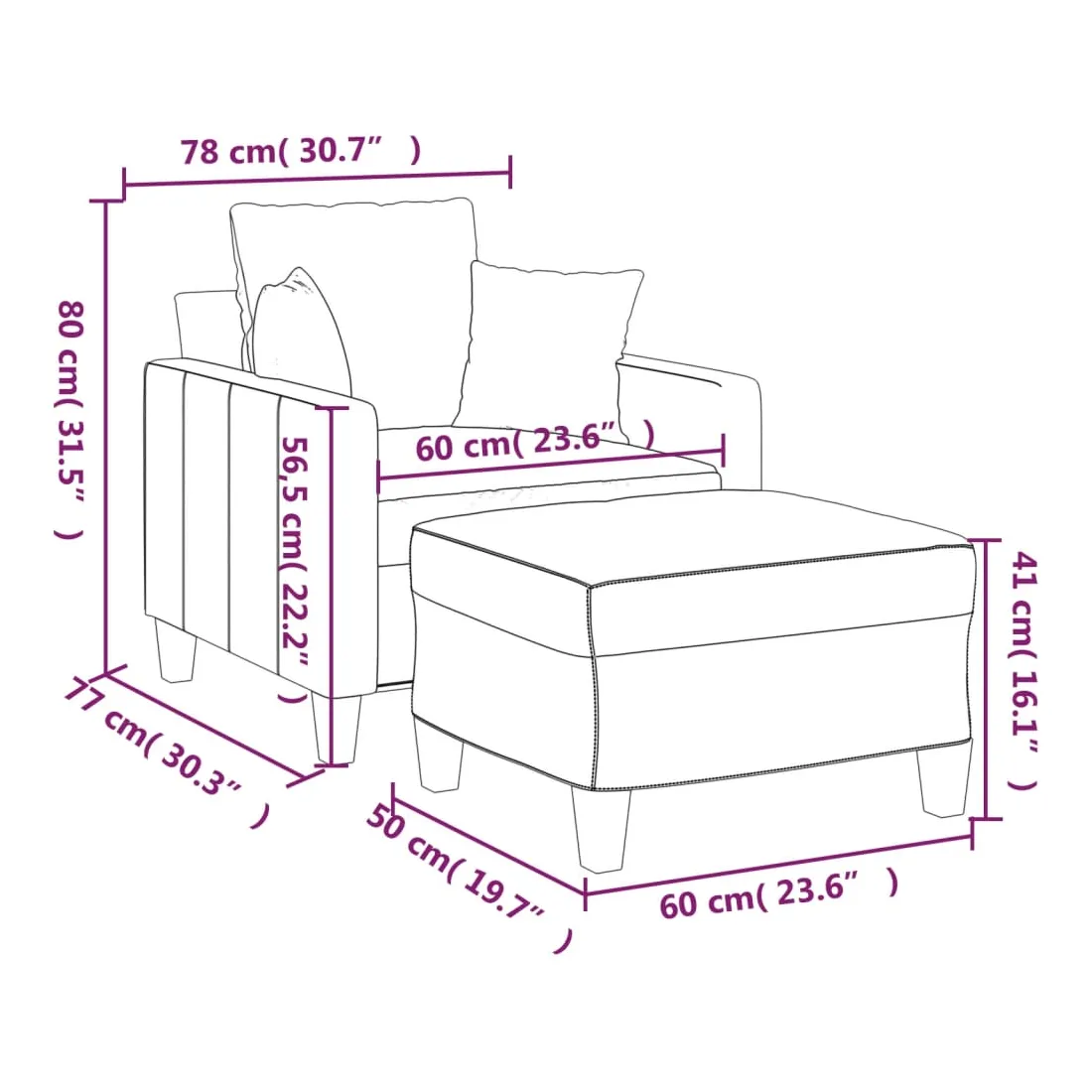 Ce fauteuil avec repose-pied est un excellent endroit pour discuter, lire, regarder la télévision ou simplement vous détendre. Il est destiné à être un point central de votre maison. Tissu durable : le tissu présente un aspect simple et épuré tout en restant respirant et durable.Structure robuste et stable : la structure en contreplaqué et en métal du canapé avec repose-pieds assure robustesse et stabilité.Expérience d'assise confortable : le fauteuil est très confortable avec le siège, les accoudoirs et le coussin de dossier bien rembourrés.Repose-pied polyvalent : ce repose-pied convient pour reposer vos pieds lorsque vous êtes allongé dans un canapé ou un fauteuil inclinable, ou pour vous offrir un siège supplémentaire dans votre pièce. De plus, le design simple et la taille compacte le rendent idéal pour presque tous vos espaces de vie.Design accrocheur : doté d'un design simple mais moderne, ce canapé avec repose-pied est destiné à attirer l'attention dans votre pièce.