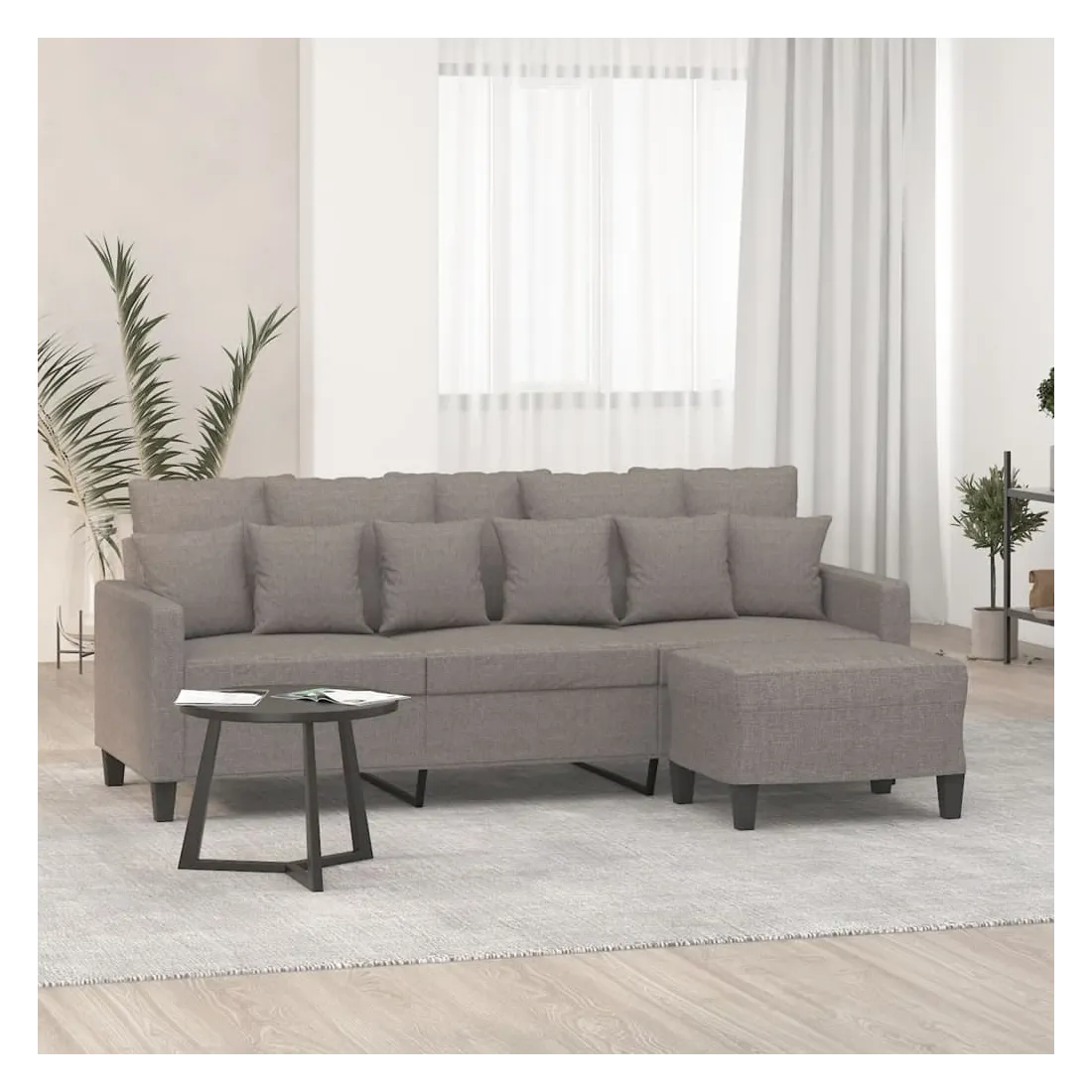 Ce canapé à 3 places avec repose-pieds est un excellent endroit pour discuter, lire, regarder la télévision ou simplement vous détendre. Il est destiné à être un point central dans votre maison. Tissu durable : le tissu présente un aspect simple et épuré tout en restant respirant et durable.Structure robuste et stable : la structure en contreplaqué et en métal du canapé avec repose-pieds assure robustesse et stabilité.Expérience d'assise confortable : le fauteuil est très confortable avec les sièges, les accoudoirs et les coussins de dossier bien rembourrés.Repose-pied polyvalent : ce repose-pied convient pour reposer vos pieds lorsque vous êtes allongé dans un canapé ou un fauteuil inclinable, ou pour vous offrir un siège supplémentaire dans votre pièce. De plus, le design simple et la taille compacte le rendent idéal pour presque tous vos espaces de vie.Design accrocheur : doté d'un design simple mais moderne, ce canapé avec repose-pied est destiné à attirer l'attention dans votre pièce.