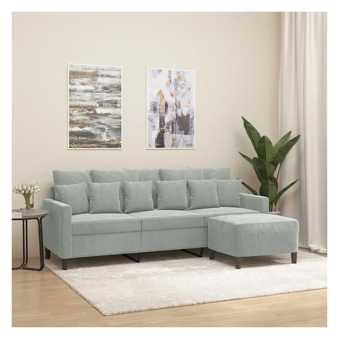 Ce canapé à 3 places avec repose-pieds est un excellent endroit pour discuter, lire, regarder la télévision ou simplement vous détendre. Il est destiné à être un point central dans votre maison. Velours durable : le velours est un tissu doux et confortable, agréable au toucher.Structure robuste et stable : la structure en contreplaqué et en métal du canapé avec repose-pieds assure robustesse et stabilité.Expérience d'assise confortable : le fauteuil est très confortable avec les sièges, les accoudoirs et les coussins de dossier bien rembourrés.Repose-pied polyvalent : ce repose-pied convient pour reposer vos pieds lorsque vous êtes allongé dans un canapé ou un fauteuil inclinable, ou pour vous offrir un siège supplémentaire dans votre pièce. De plus, le design simple et la taille compacte le rendent idéal pour presque tous vos espaces de vie.Design accrocheur : doté d'un design simple mais moderne, ce canapé avec repose-pied est destiné à attirer l'attention dans votre pièce.
