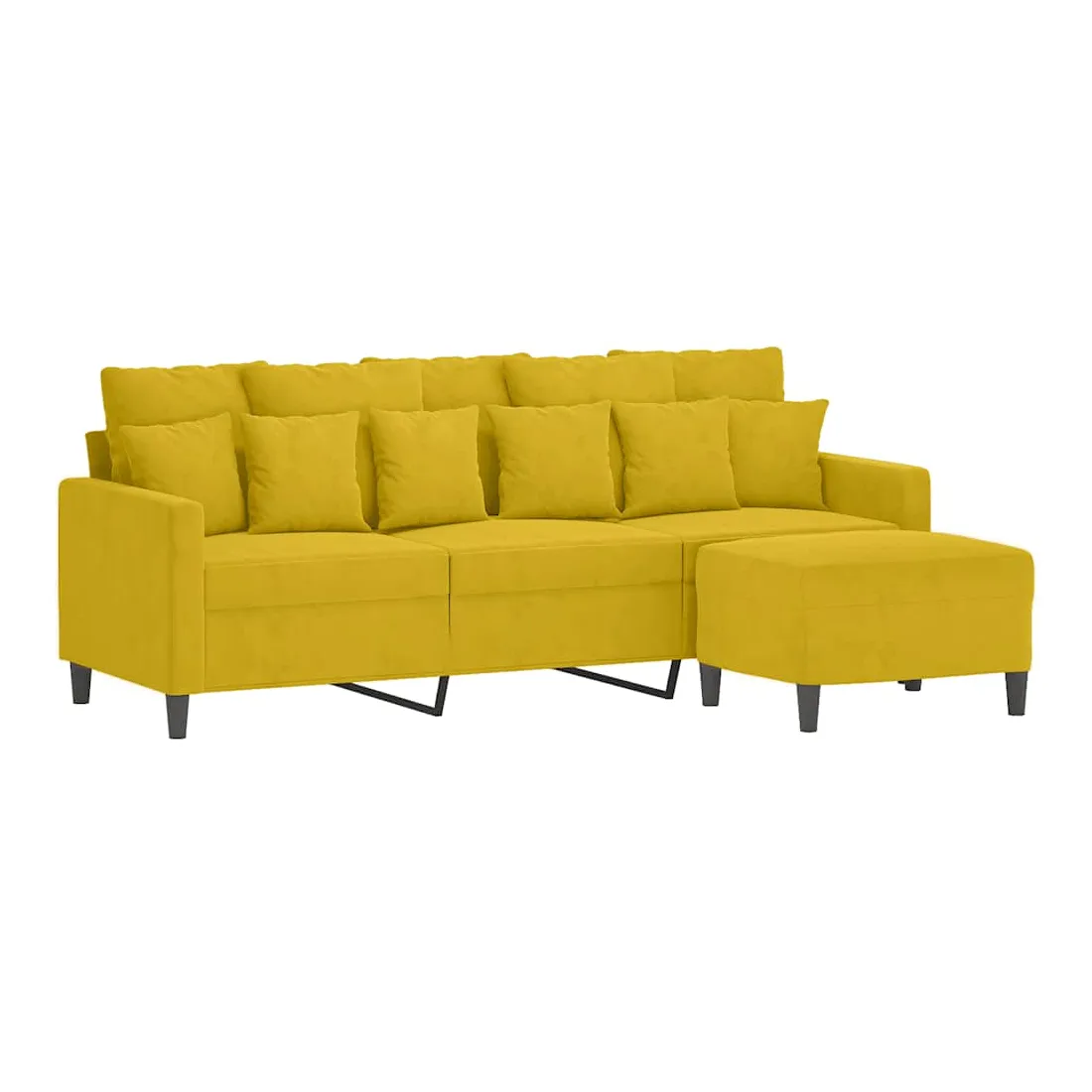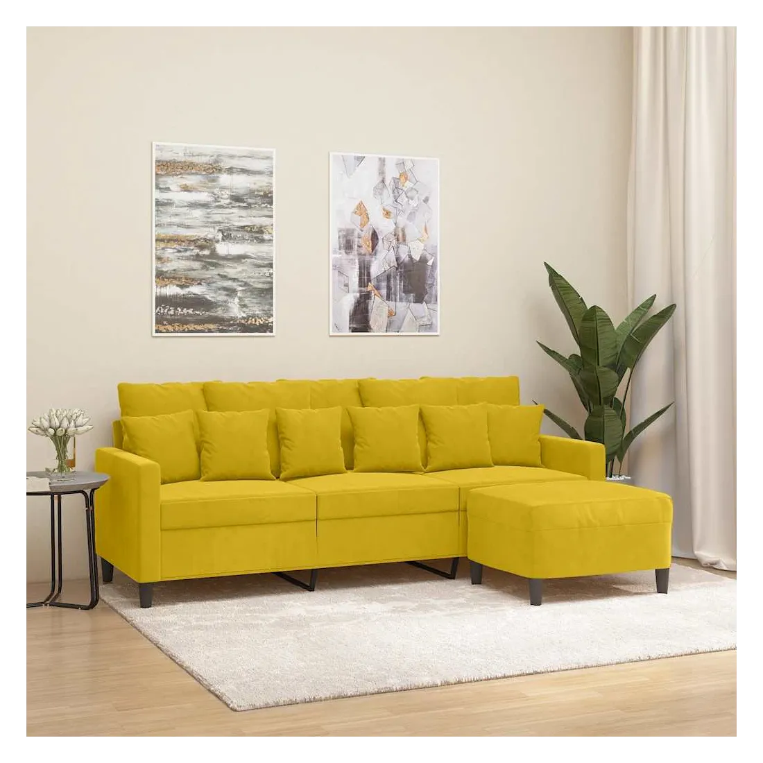 Ce canapé à 3 places avec repose-pieds est un excellent endroit pour discuter, lire, regarder la télévision ou simplement vous détendre. Il est destiné à être un point central dans votre maison. Velours durable : le velours est un tissu doux et confortable, agréable au toucher.Structure robuste et stable : la structure en contreplaqué et en métal du canapé avec repose-pieds assure robustesse et stabilité.Expérience d'assise confortable : le fauteuil est très confortable avec les sièges, les accoudoirs et les coussins de dossier bien rembourrés.Repose-pied polyvalent : ce repose-pied convient pour reposer vos pieds lorsque vous êtes allongé dans un canapé ou un fauteuil inclinable, ou pour vous offrir un siège supplémentaire dans votre pièce. De plus, le design simple et la taille compacte le rendent idéal pour presque tous vos espaces de vie.Design accrocheur : doté d'un design simple mais moderne, ce canapé avec repose-pied est destiné à attirer l'attention dans votre pièce.