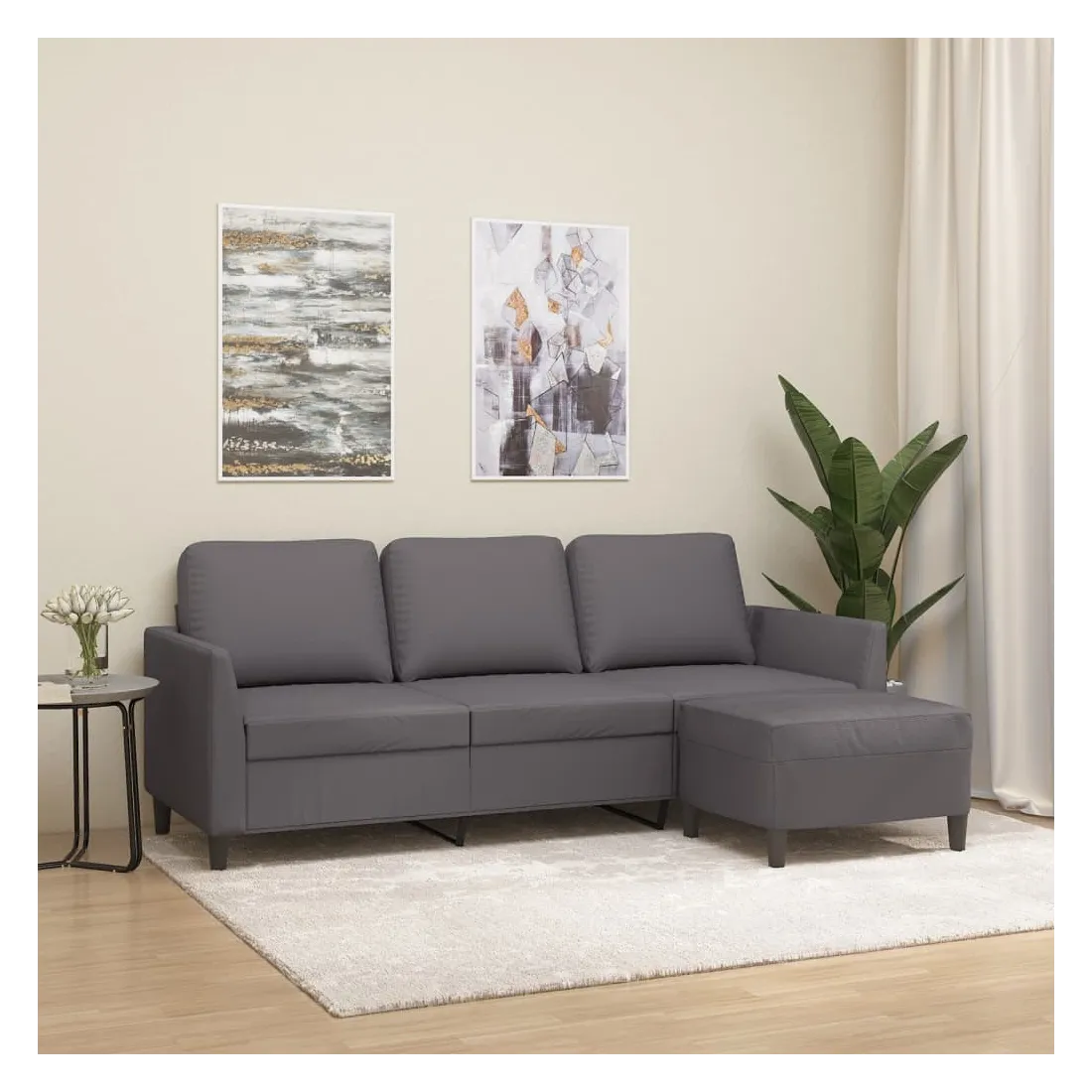 Ce canapé à 3 places avec repose-pieds est un excellent endroit pour discuter, lire, regarder la télévision ou simplement vous détendre. Il est destiné à être un point central dans votre maison. Similicuir durable : le similicuir de qualité supérieure est un matériau très durable. Il est résistant aux taches, ce qui le rend facile à nettoyer avec un chiffon humide. La surface lisse donne également un aspect luxueux et la beauté du cuir véritable.Structure robuste et stable : la structure en contreplaqué et en métal du canapé avec repose-pieds assure robustesse et stabilité.Expérience d'assise confortable : le fauteuil est très confortable avec les sièges, les accoudoirs et les coussins de dossier bien rembourrés.Repose-pied polyvalent : ce repose-pied convient pour reposer vos pieds lorsque vous êtes allongé dans un canapé ou un fauteuil inclinable, ou pour vous offrir un siège supplémentaire dans votre pièce. De plus, le design simple et la taille compacte le rendent idéal pour presque tous vos espaces de vie.Design accrocheur : doté d'un design simple mais moderne, ce canapé avec repose-pied est destiné à attirer l'attention dans votre pièce.
