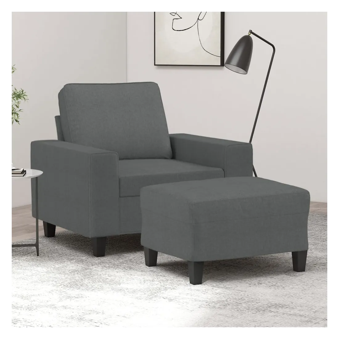 Ce fauteuil avec repose-pied est un excellent endroit pour discuter, lire, regarder la télévision ou simplement vous détendre. Il est destiné à être un point central de votre maison. Tissu durable : le tissu présente un aspect simple et épuré tout en restant respirant et durable.Structure robuste et stable : la structure en contreplaqué et en métal du canapé avec repose-pieds assure robustesse et stabilité.Expérience d'assise confortable : le fauteuil est très confortable avec le siège, les accoudoirs et le coussin de dossier bien rembourrés.Repose-pied polyvalent : ce repose-pied convient pour reposer vos pieds lorsque vous êtes allongé dans un canapé ou un fauteuil inclinable, ou pour vous offrir un siège supplémentaire dans votre pièce. De plus, le design simple et la taille compacte le rendent idéal pour presque tous vos espaces de vie.Design accrocheur : doté d'un design simple mais moderne, ce canapé avec repose-pied est destiné à attirer l'attention dans votre pièce.