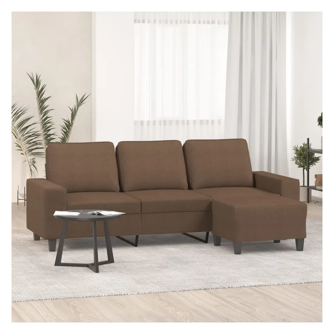 Ce canapé à 3 places avec repose-pieds est un excellent endroit pour discuter, lire, regarder la télévision ou simplement vous détendre. Il est destiné à être un point central dans votre maison. Tissu durable : le tissu présente un aspect simple et épuré tout en restant respirant et durable.Structure robuste et stable : la structure en contreplaqué et en métal du canapé avec repose-pieds assure robustesse et stabilité.Expérience d'assise confortable : le fauteuil est très confortable avec les sièges, les accoudoirs et les coussins de dossier bien rembourrés.Repose-pied polyvalent : ce repose-pied convient pour reposer vos pieds lorsque vous êtes allongé dans un canapé ou un fauteuil inclinable, ou pour vous offrir un siège supplémentaire dans votre pièce. De plus, le design simple et la taille compacte le rendent idéal pour presque tous vos espaces de vie.Design accrocheur : doté d'un design simple mais moderne, ce canapé avec repose-pied est destiné à attirer l'attention dans votre pièce.