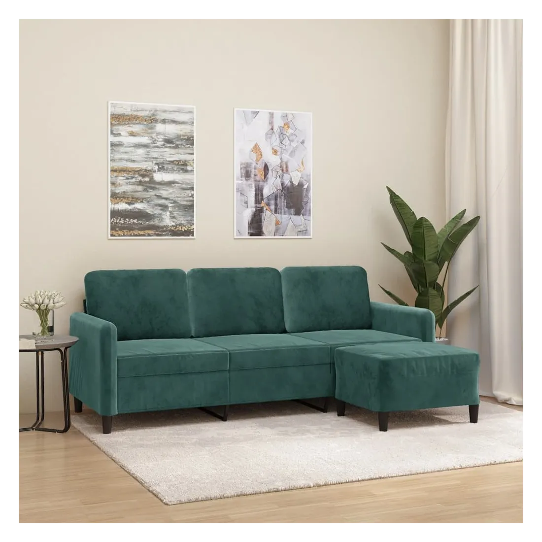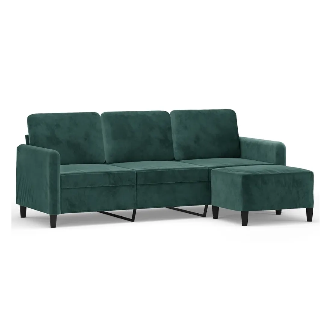 Ce canapé à 3 places avec repose-pieds est un excellent endroit pour discuter, lire, regarder la télévision ou simplement vous détendre. Il est destiné à être un point central dans votre maison. Velours durable : le velours est un tissu doux et confortable, agréable au toucher.Structure robuste et stable : la structure en contreplaqué et en métal du canapé avec repose-pieds assure robustesse et stabilité.Expérience d'assise confortable : le fauteuil est très confortable avec les sièges, les accoudoirs et les coussins de dossier bien rembourrés.Repose-pied polyvalent : ce repose-pied convient pour reposer vos pieds lorsque vous êtes allongé dans un canapé ou un fauteuil inclinable, ou pour vous offrir un siège supplémentaire dans votre pièce. De plus, le design simple et la taille compacte le rendent idéal pour presque tous vos espaces de vie.Design accrocheur : doté d'un design simple mais moderne, ce canapé avec repose-pied est destiné à attirer l'attention dans votre pièce.