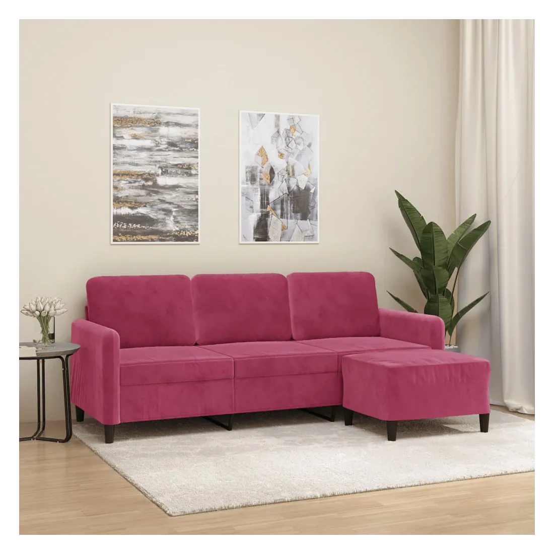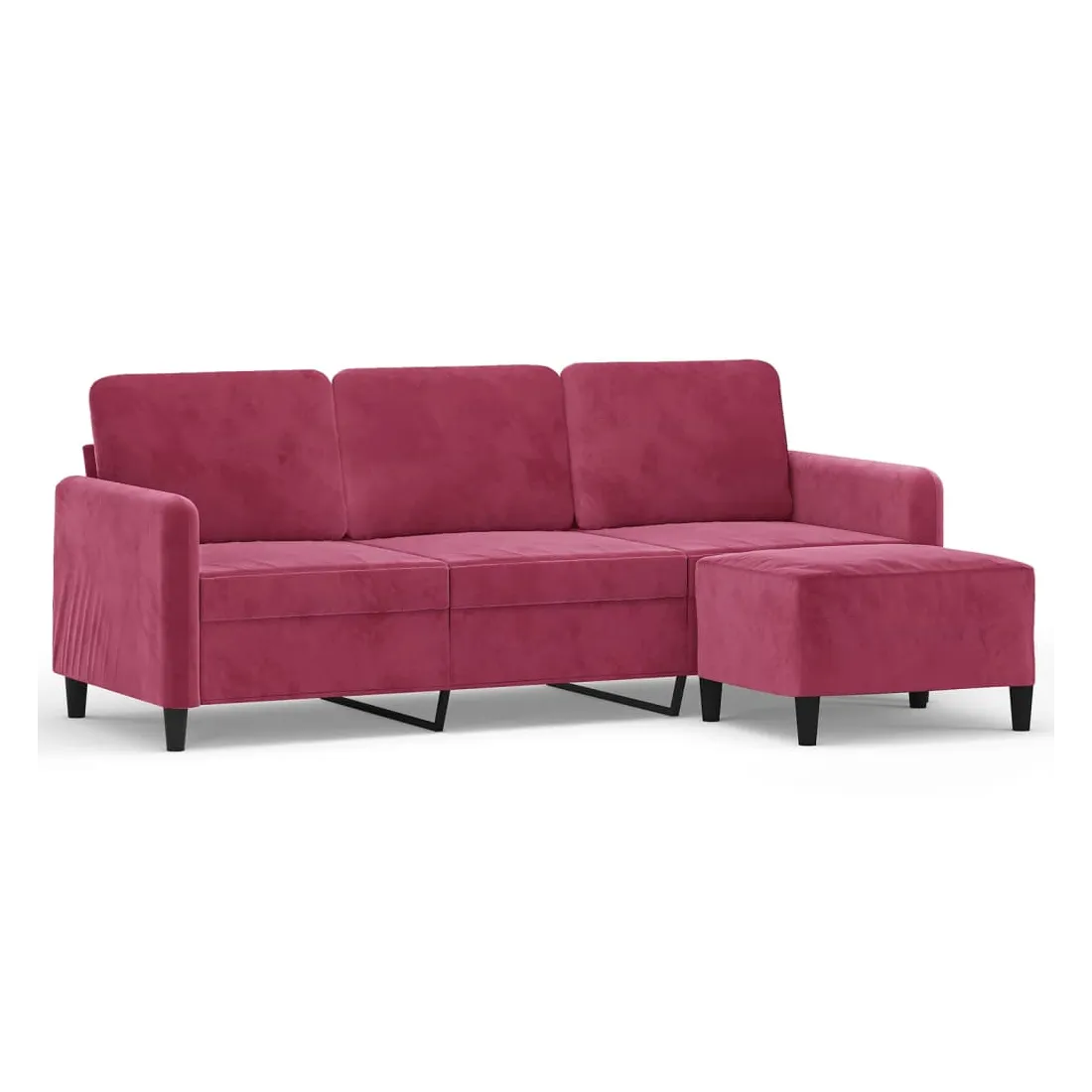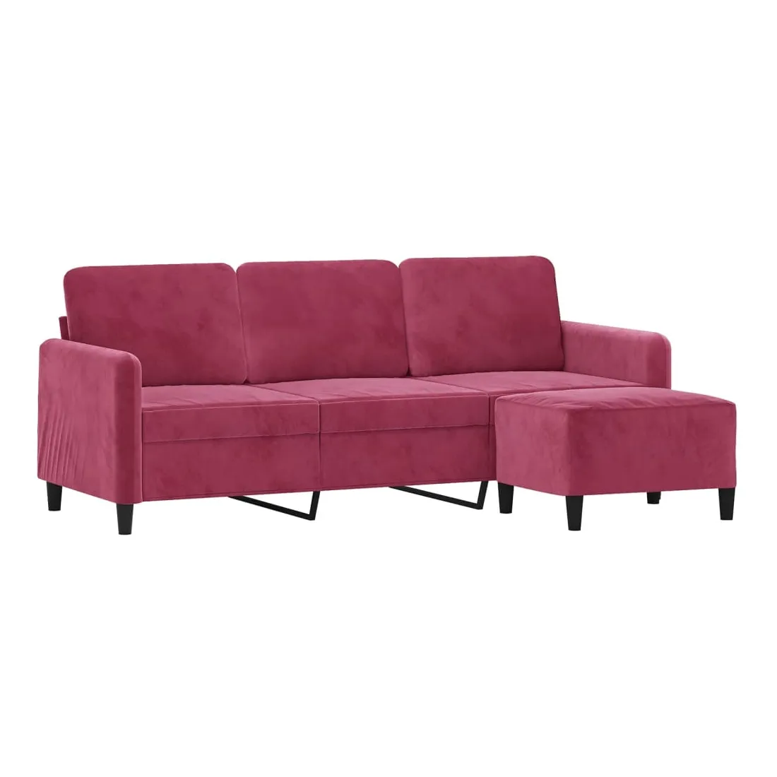 Ce canapé à 3 places avec repose-pieds est un excellent endroit pour discuter, lire, regarder la télévision ou simplement vous détendre. Il est destiné à être un point central dans votre maison. Velours durable : le velours est un tissu doux et confortable, agréable au toucher.Structure robuste et stable : la structure en contreplaqué et en métal du canapé avec repose-pieds assure robustesse et stabilité.Expérience d'assise confortable : le fauteuil est très confortable avec les sièges, les accoudoirs et les coussins de dossier bien rembourrés.Repose-pied polyvalent : ce repose-pied convient pour reposer vos pieds lorsque vous êtes allongé dans un canapé ou un fauteuil inclinable, ou pour vous offrir un siège supplémentaire dans votre pièce. De plus, le design simple et la taille compacte le rendent idéal pour presque tous vos espaces de vie.Design accrocheur : doté d'un design simple mais moderne, ce canapé avec repose-pied est destiné à attirer l'attention dans votre pièce.