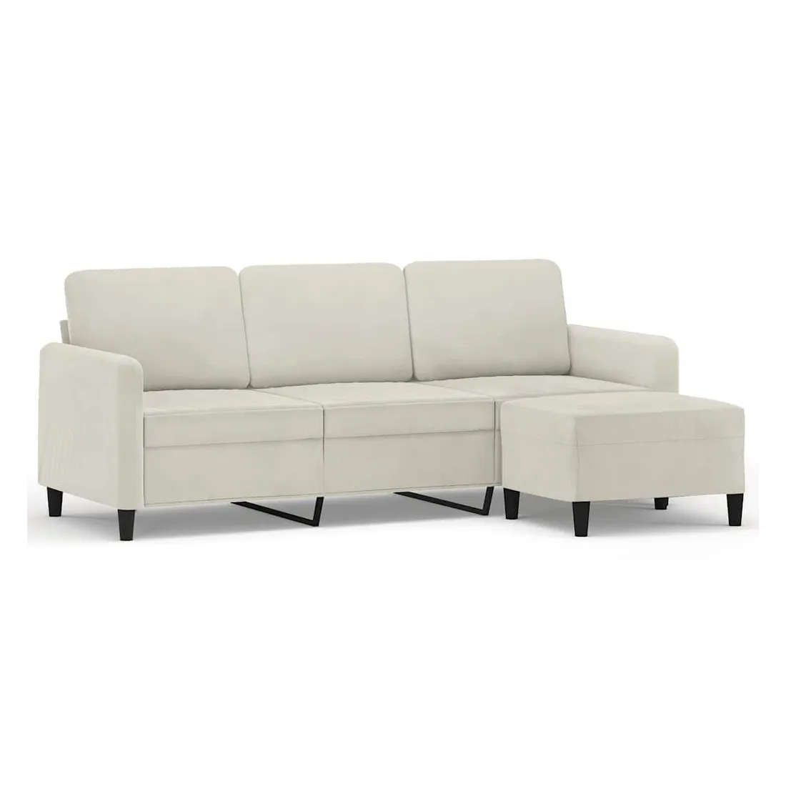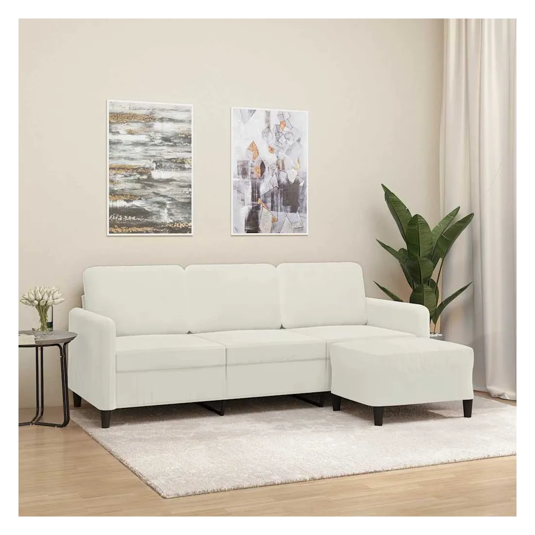 Ce canapé à 3 places avec repose-pieds est un excellent endroit pour discuter, lire, regarder la télévision ou simplement vous détendre. Il est destiné à être un point central dans votre maison. Velours durable : le velours est un tissu doux et confortable, agréable au toucher.Structure robuste et stable : la structure en contreplaqué et en métal du canapé avec repose-pieds assure robustesse et stabilité.Expérience d'assise confortable : le fauteuil est très confortable avec les sièges, les accoudoirs et les coussins de dossier bien rembourrés.Repose-pied polyvalent : ce repose-pied convient pour reposer vos pieds lorsque vous êtes allongé dans un canapé ou un fauteuil inclinable, ou pour vous offrir un siège supplémentaire dans votre pièce. De plus, le design simple et la taille compacte le rendent idéal pour presque tous vos espaces de vie.Design accrocheur : doté d'un design simple mais moderne, ce canapé avec repose-pied est destiné à attirer l'attention dans votre pièce.