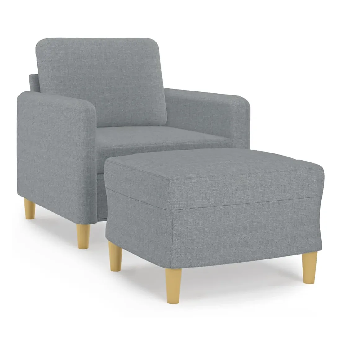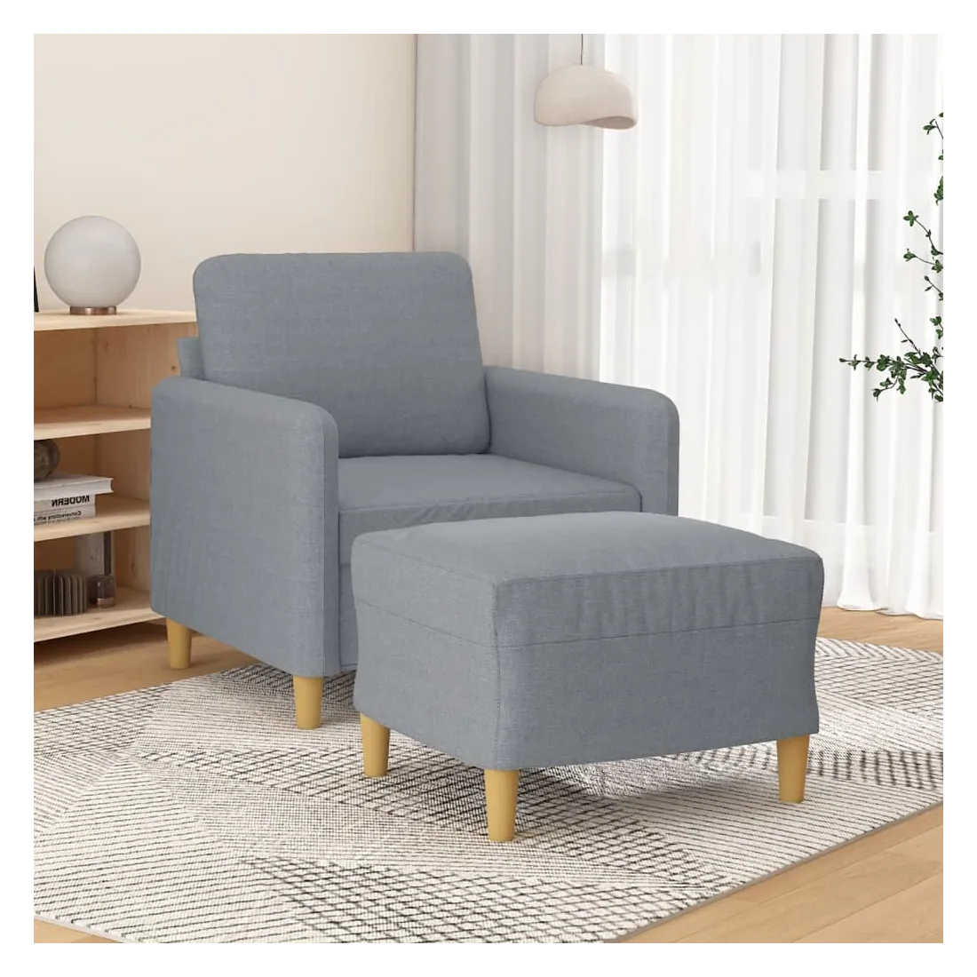 Ce fauteuil avec repose-pied est un excellent endroit pour discuter, lire, regarder la télévision ou simplement vous détendre. Il est destiné à être un point central de votre maison. Tissu durable : le tissu présente un aspect simple et épuré tout en restant respirant et durable.Structure robuste et stable : la structure en contreplaqué et en métal du canapé avec repose-pieds assure robustesse et stabilité.Expérience d'assise confortable : le fauteuil est très confortable avec le siège, les accoudoirs et le coussin de dossier bien rembourrés.Repose-pied polyvalent : ce repose-pied convient pour reposer vos pieds lorsque vous êtes allongé dans un canapé ou un fauteuil inclinable, ou pour vous offrir un siège supplémentaire dans votre pièce. De plus, le design simple et la taille compacte le rendent idéal pour presque tous vos espaces de vie.Design accrocheur : doté d'un design simple mais moderne, ce canapé avec repose-pied est destiné à attirer l'attention dans votre pièce.