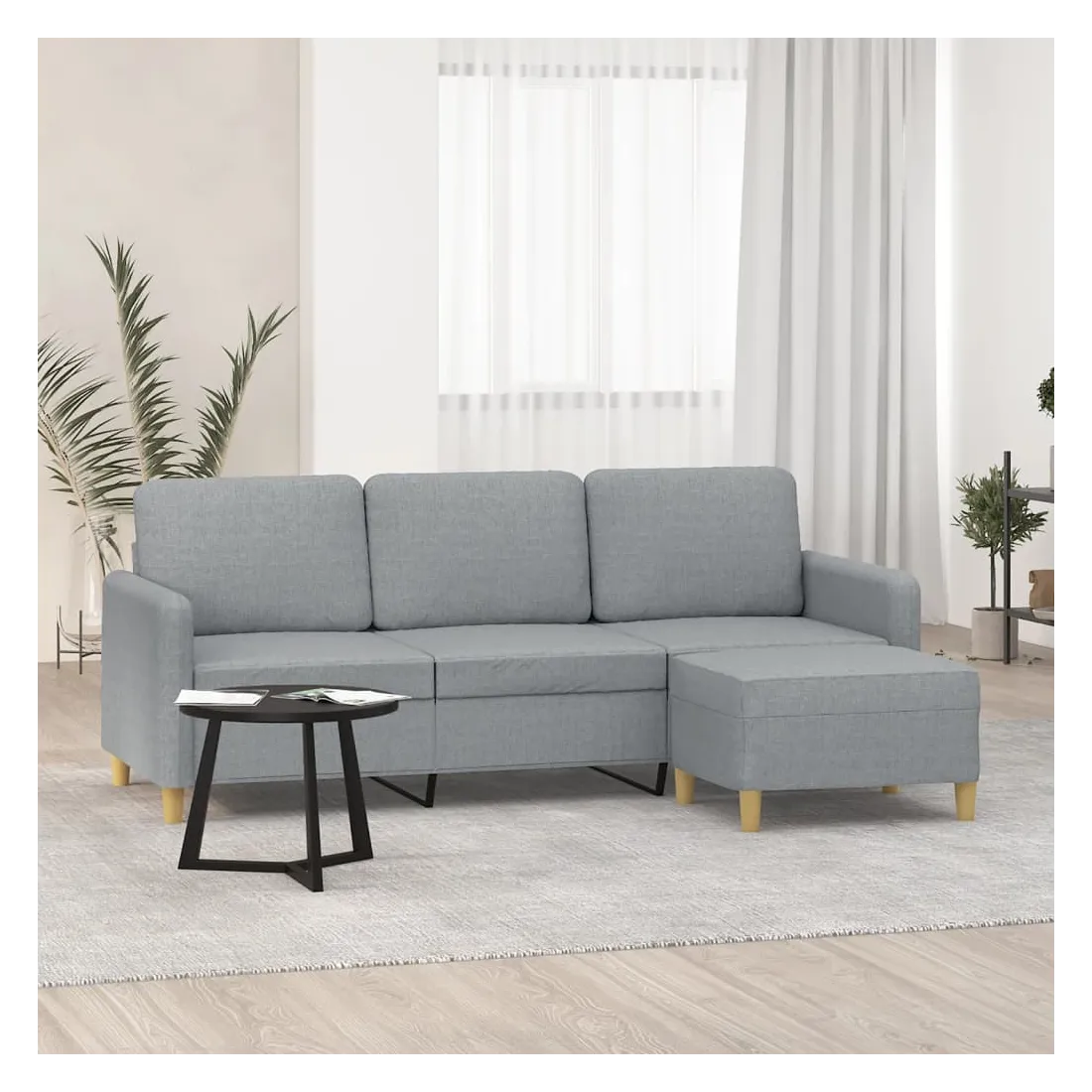 Ce canapé à 3 places avec repose-pieds est un excellent endroit pour discuter, lire, regarder la télévision ou simplement vous détendre. Il est destiné à être un point central dans votre maison. Tissu durable : le tissu présente un aspect simple et épuré tout en restant respirant et durable.Structure robuste et stable : la structure en contreplaqué et en métal du canapé avec repose-pieds assure robustesse et stabilité.Expérience d'assise confortable : le fauteuil est très confortable avec les sièges, les accoudoirs et les coussins de dossier bien rembourrés.Repose-pied polyvalent : ce repose-pied convient pour reposer vos pieds lorsque vous êtes allongé dans un canapé ou un fauteuil inclinable, ou pour vous offrir un siège supplémentaire dans votre pièce. De plus, le design simple et la taille compacte le rendent idéal pour presque tous vos espaces de vie.Design accrocheur : doté d'un design simple mais moderne, ce canapé avec repose-pied est destiné à attirer l'attention dans votre pièce.