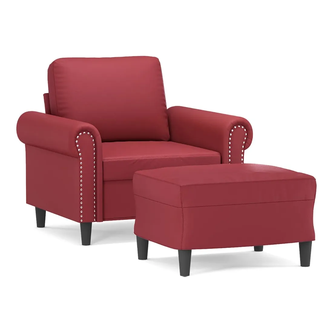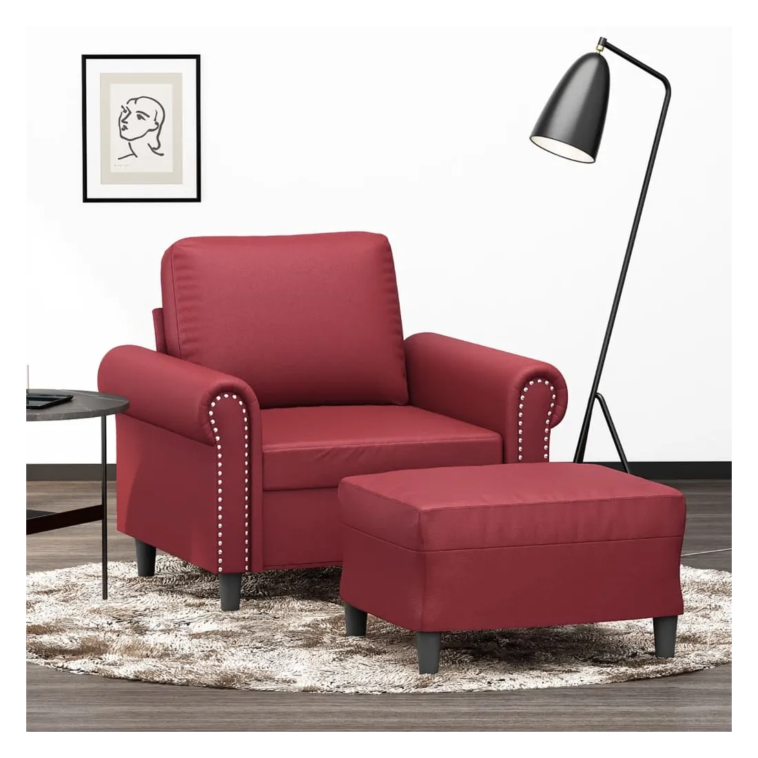 Ce fauteuil avec repose-pied est un excellent endroit pour discuter, lire, regarder la télévision ou simplement vous détendre. Il est destiné à être un point central de votre maison. Similicuir durable : le similicuir de qualité supérieure est un matériau très durable. Il est résistant aux taches, ce qui le rend facile à nettoyer avec un chiffon humide. La surface lisse donne également un aspect luxueux et la beauté du cuir véritable.Structure robuste et stable : la structure en contreplaqué et en métal du canapé avec repose-pieds assure robustesse et stabilité.Expérience d'assise confortable : le fauteuil est très confortable avec le siège, les accoudoirs et le coussin de dossier bien rembourrés.Repose-pied polyvalent : ce repose-pied convient pour reposer vos pieds lorsque vous êtes allongé dans un canapé ou un fauteuil inclinable, ou pour vous offrir un siège supplémentaire dans votre pièce. De plus, le design simple et la taille compacte le rendent idéal pour presque tous vos espaces de vie.Design accrocheur : doté d'un design simple mais moderne, ce canapé avec repose-pied est destiné à attirer l'attention dans votre pièce.