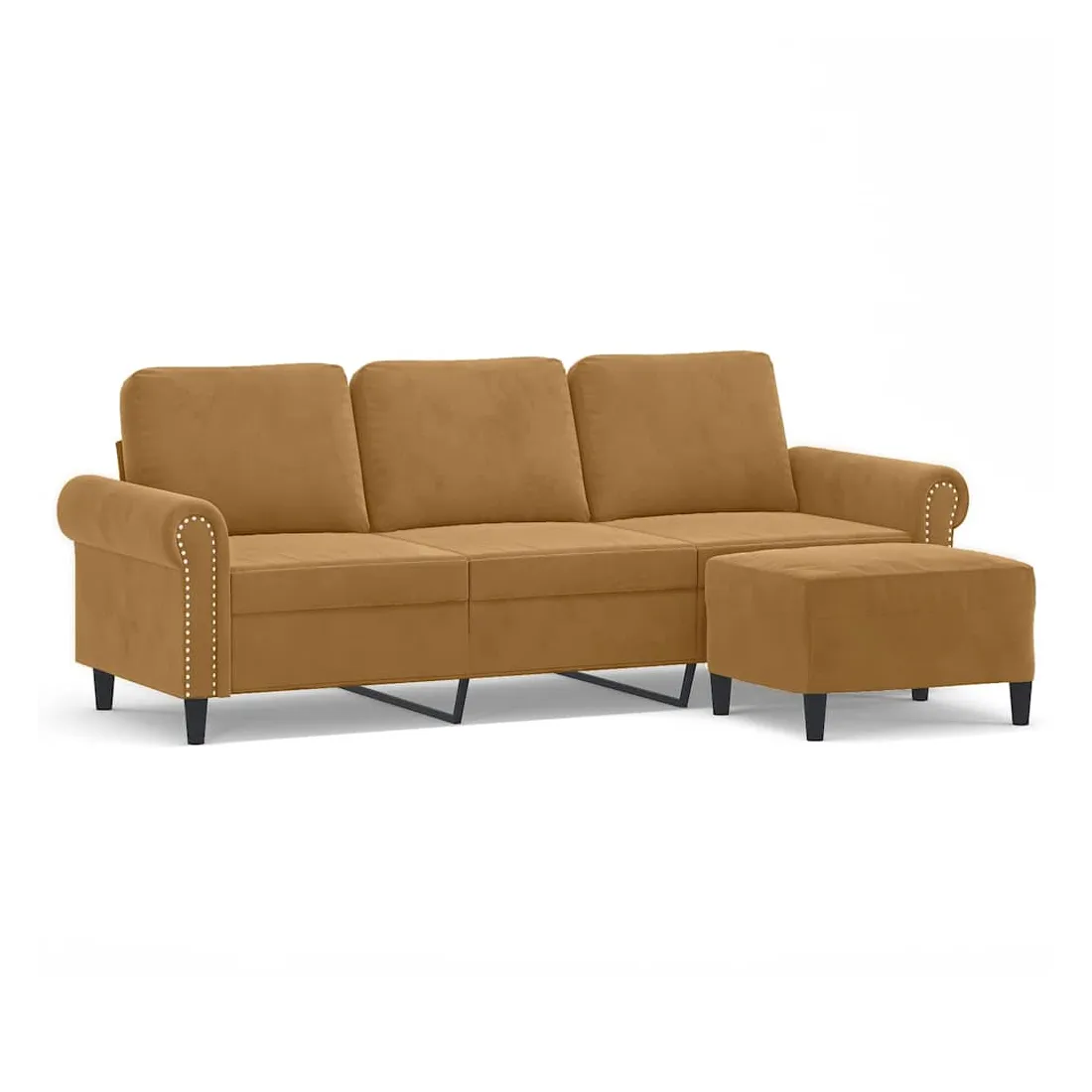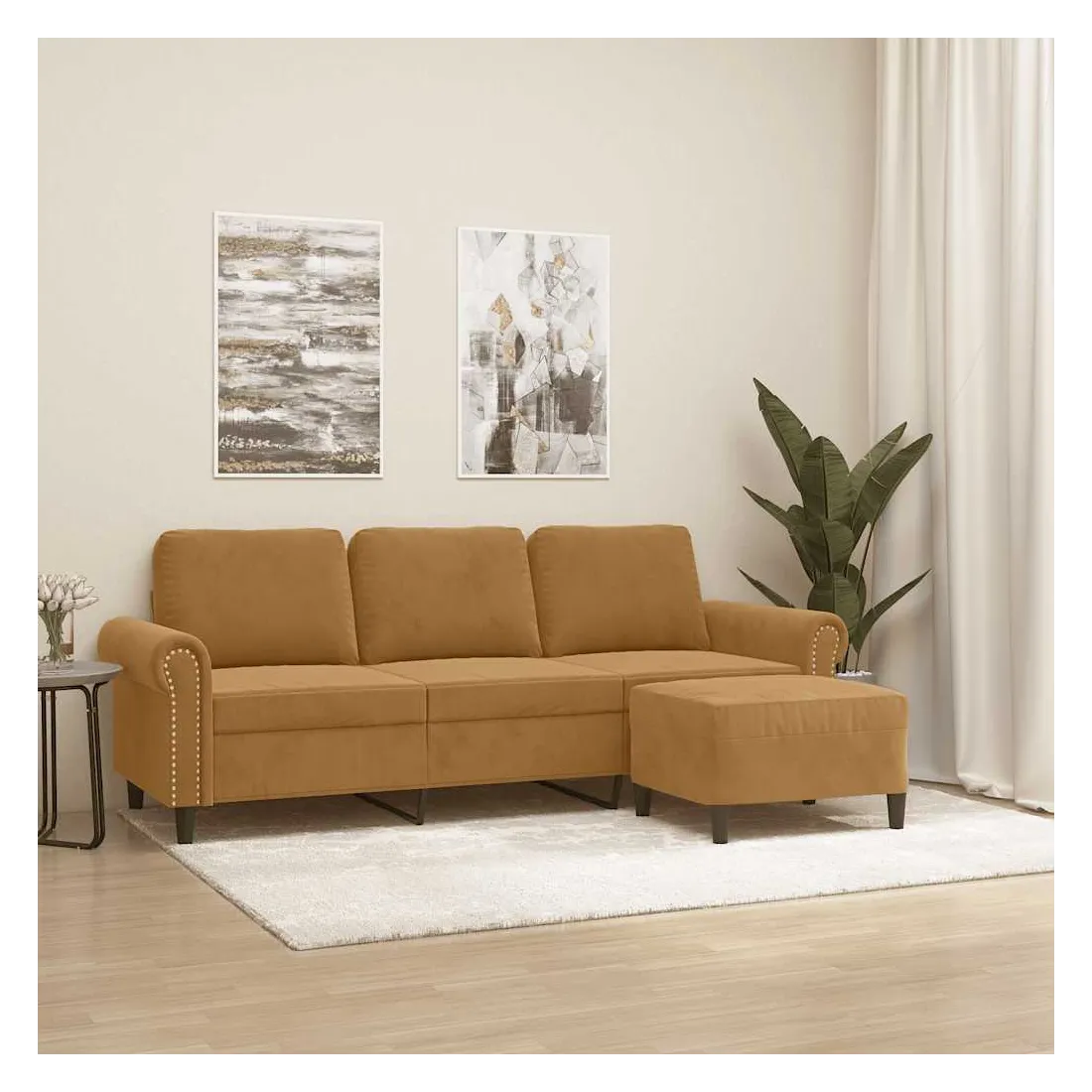 Ce canapé à 3 places avec repose-pieds est un excellent endroit pour discuter, lire, regarder la télévision ou simplement vous détendre. Il est destiné à être un point central dans votre maison. Velours durable : le velours est un tissu doux et confortable, agréable au toucher.Structure robuste et stable : la structure en contreplaqué et en métal du canapé avec repose-pieds assure robustesse et stabilité.Expérience d'assise confortable : le fauteuil est très confortable avec les sièges, les accoudoirs et les coussins de dossier bien rembourrés.Repose-pied polyvalent : ce repose-pied convient pour reposer vos pieds lorsque vous êtes allongé dans un canapé ou un fauteuil inclinable, ou pour vous offrir un siège supplémentaire dans votre pièce. De plus, le design simple et la taille compacte le rendent idéal pour presque tous vos espaces de vie.Design accrocheur : doté d'un design simple mais moderne, ce canapé avec repose-pied est destiné à attirer l'attention dans votre pièce.