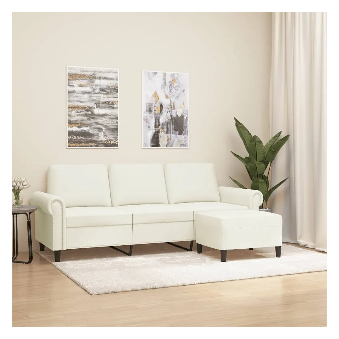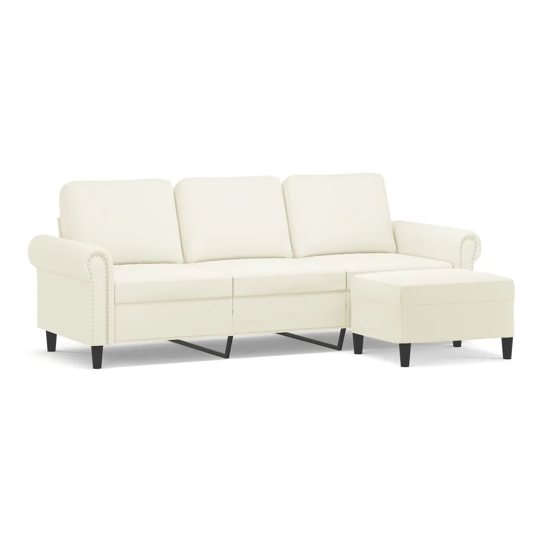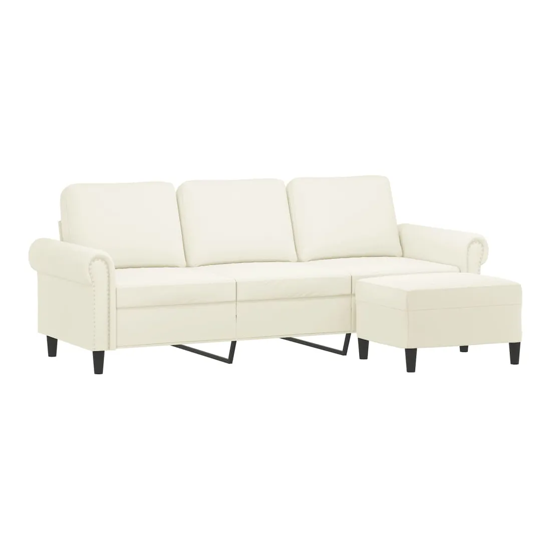 Ce canapé à 3 places avec repose-pieds est un excellent endroit pour discuter, lire, regarder la télévision ou simplement vous détendre. Il est destiné à être un point central dans votre maison. Velours durable : le velours est un tissu doux et confortable, agréable au toucher.Structure robuste et stable : la structure en contreplaqué et en métal du canapé avec repose-pieds assure robustesse et stabilité.Expérience d'assise confortable : le fauteuil est très confortable avec les sièges, les accoudoirs et les coussins de dossier bien rembourrés.Repose-pied polyvalent : ce repose-pied convient pour reposer vos pieds lorsque vous êtes allongé dans un canapé ou un fauteuil inclinable, ou pour vous offrir un siège supplémentaire dans votre pièce. De plus, le design simple et la taille compacte le rendent idéal pour presque tous vos espaces de vie.Design accrocheur : doté d'un design simple mais moderne, ce canapé avec repose-pied est destiné à attirer l'attention dans votre pièce.