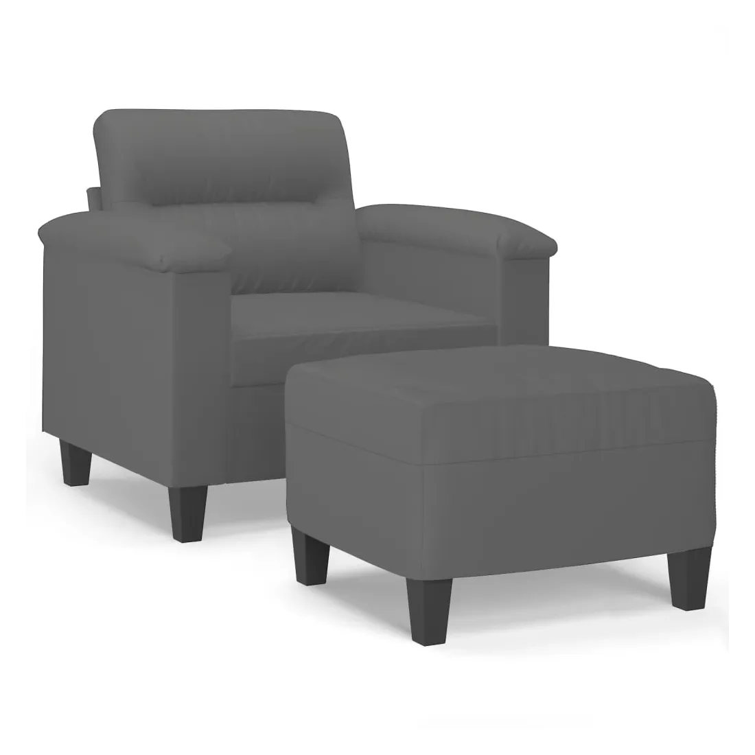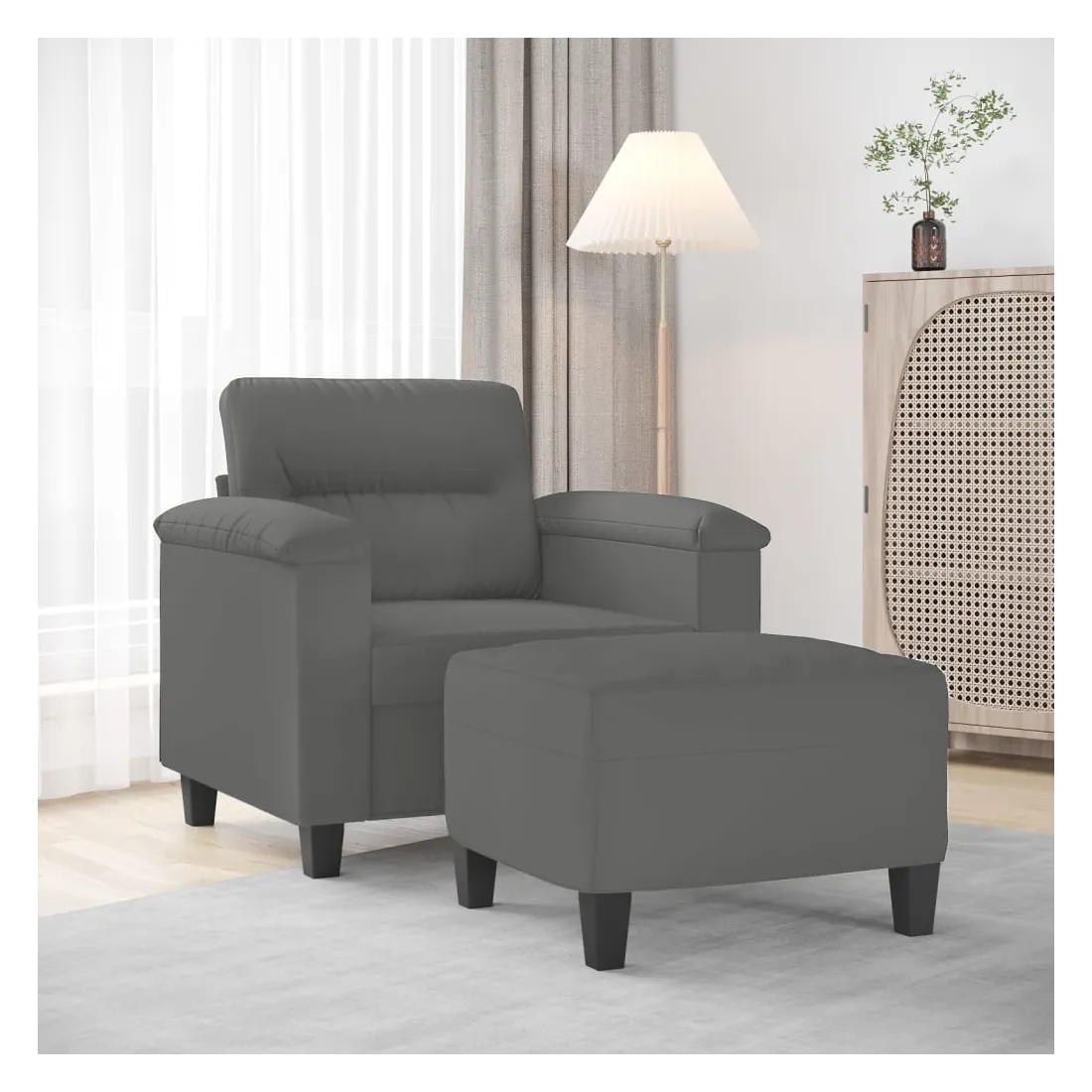 Ce fauteuil avec repose-pied est un excellent endroit pour discuter, lire, regarder la télévision ou simplement vous détendre. Il est destiné à être un point central de votre maison. Tissu microfibre durable : le microfibre est un tissu synthétique composé de fibres ultra-fines, particulièrement résistantes aux taches. Le tissu en microfibre est un excellent choix pour le rembourrage des meubles en raison de sa durabilité et de son nettoyage facile.Structure robuste et stable : la structure en contreplaqué et en métal du canapé avec repose-pieds assure robustesse et stabilité.Expérience d'assise confortable : le fauteuil est très confortable avec le siège, les accoudoirs et le coussin de dossier bien rembourrés.Repose-pied polyvalent : ce repose-pied convient pour reposer vos pieds lorsque vous êtes allongé dans un canapé ou un fauteuil inclinable, ou pour vous offrir un siège supplémentaire dans votre pièce. De plus, le design simple et la taille compacte le rendent idéal pour presque tous vos espaces de vie.Design accrocheur : doté d'un design simple mais moderne, ce canapé avec repose-pied est destiné à attirer l'attention dans votre pièce.