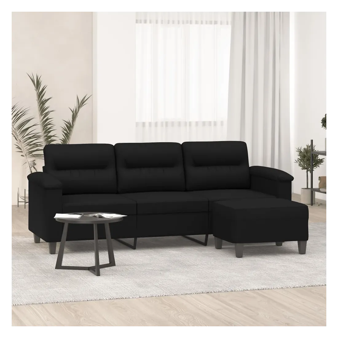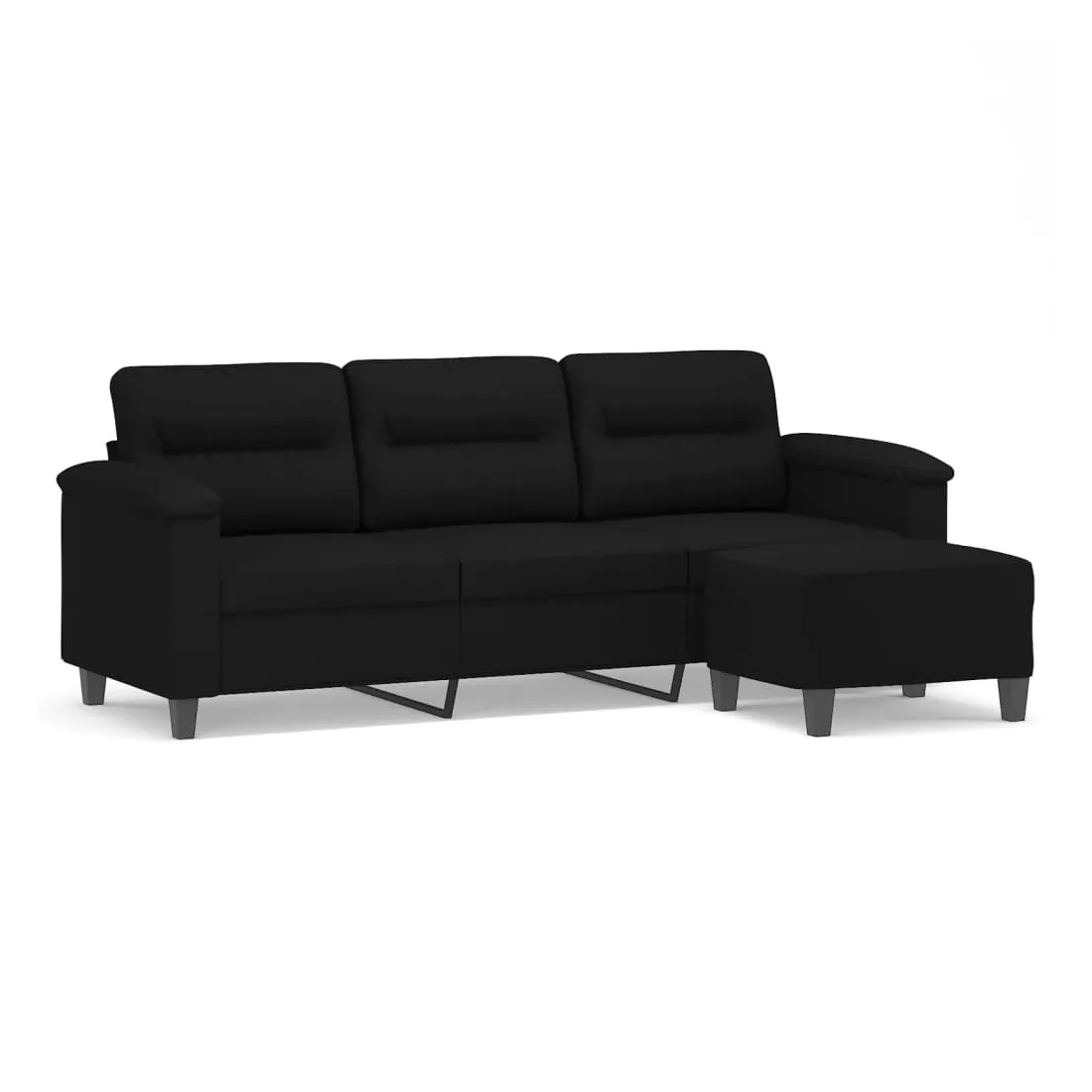 Ce canapé à 3 places avec repose-pieds est un excellent endroit pour discuter, lire, regarder la télévision ou simplement vous détendre. Il est destiné à être un point central dans votre maison. Tissu microfibre durable : le microfibre est un tissu synthétique composé de fibres ultra-fines, particulièrement résistantes aux taches. Le tissu en microfibre est un excellent choix pour le rembourrage des meubles en raison de sa durabilité et de son nettoyage facile.Structure robuste et stable : la structure en contreplaqué et en métal du canapé avec repose-pieds assure robustesse et stabilité.Expérience d'assise confortable : le fauteuil est très confortable avec les sièges, les accoudoirs et les coussins de dossier bien rembourrés.Repose-pied polyvalent : ce repose-pied convient pour reposer vos pieds lorsque vous êtes allongé dans un canapé ou un fauteuil inclinable, ou pour vous offrir un siège supplémentaire dans votre pièce. De plus, le design simple et la taille compacte le rendent idéal pour presque tous vos espaces de vie.Design accrocheur : doté d'un design simple mais moderne, ce canapé avec repose-pied est destiné à attirer l'attention dans votre pièce.