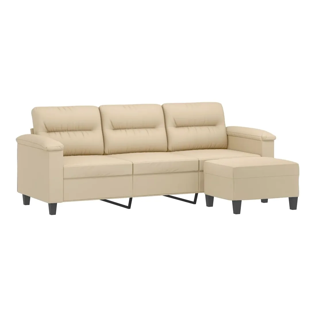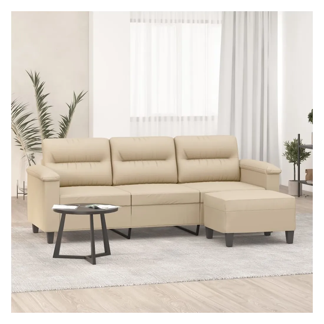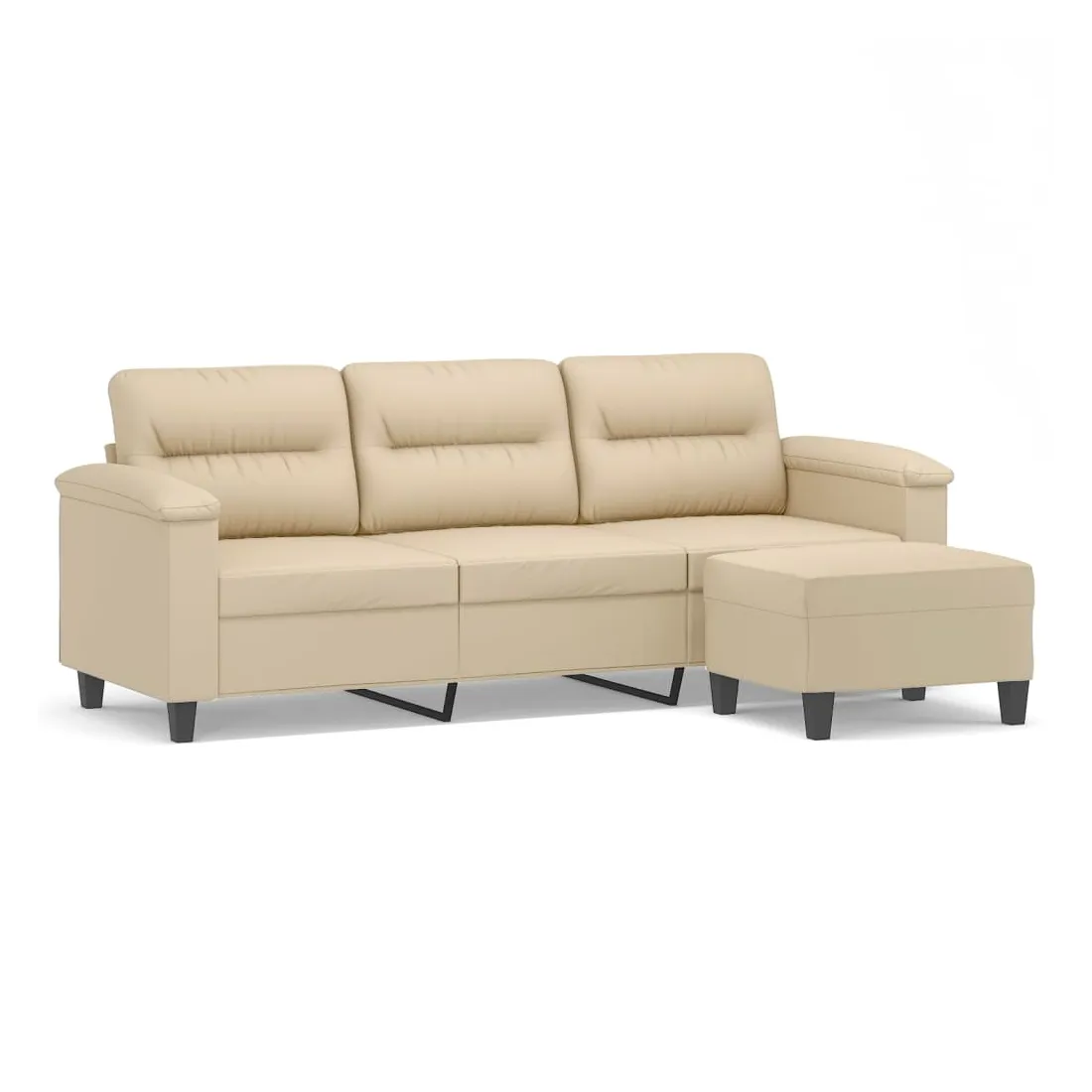 Ce canapé à 3 places avec repose-pieds est un excellent endroit pour discuter, lire, regarder la télévision ou simplement vous détendre. Il est destiné à être un point central dans votre maison. Tissu microfibre durable : le microfibre est un tissu synthétique composé de fibres ultra-fines, particulièrement résistantes aux taches. Le tissu en microfibre est un excellent choix pour le rembourrage des meubles en raison de sa durabilité et de son nettoyage facile.Structure robuste et stable : la structure en contreplaqué et en métal du canapé avec repose-pieds assure robustesse et stabilité.Expérience d'assise confortable : le fauteuil est très confortable avec les sièges, les accoudoirs et les coussins de dossier bien rembourrés.Repose-pied polyvalent : ce repose-pied convient pour reposer vos pieds lorsque vous êtes allongé dans un canapé ou un fauteuil inclinable, ou pour vous offrir un siège supplémentaire dans votre pièce. De plus, le design simple et la taille compacte le rendent idéal pour presque tous vos espaces de vie.Design accrocheur : doté d'un design simple mais moderne, ce canapé avec repose-pied est destiné à attirer l'attention dans votre pièce.